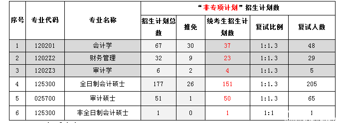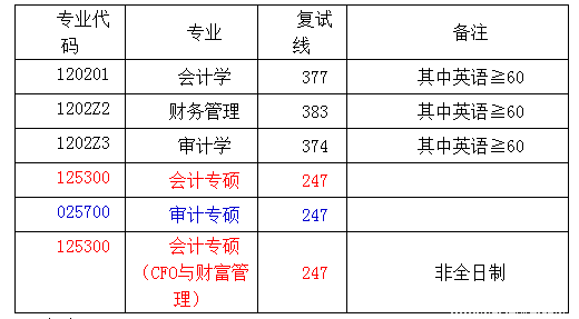 1、少數民族骨干人才計劃分數線:普碩(含會計學、財務管理、審計學)復試分數線為300分,專業碩士復試分數為211分。退役大學生士兵計劃:復試分數線為總分不低于156分。