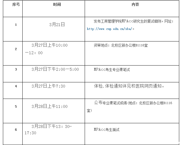 中國石油大學(北京)工商管理學院2017年MPAcc招生復試細則