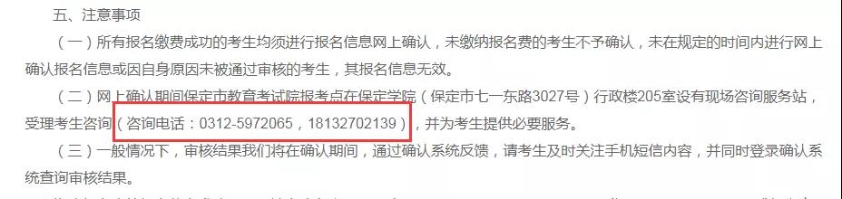 例如保定教育考試院的電話就在確認(rèn)公告的最下面