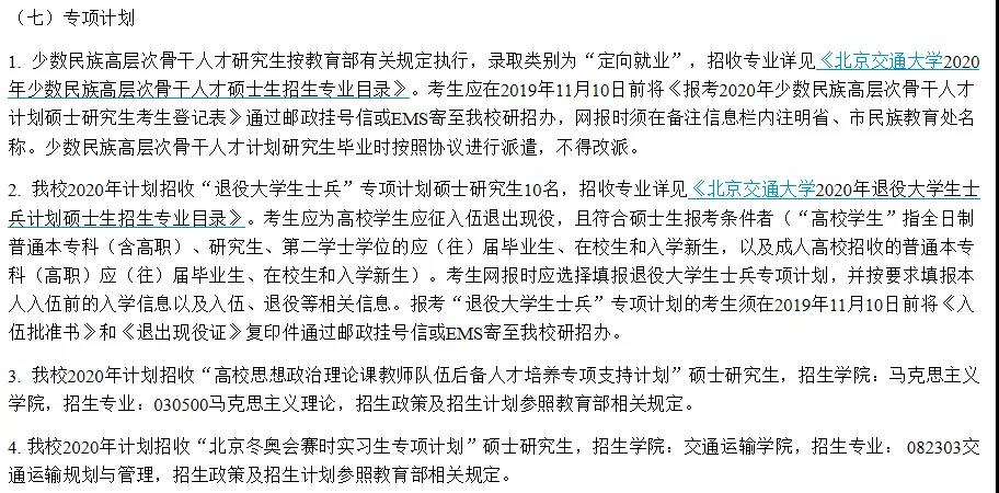 大部分院校的專項計劃主要為“少干計劃”與“大學生士兵計劃”,具體要求需要同學到報考院校研究生官網查看。