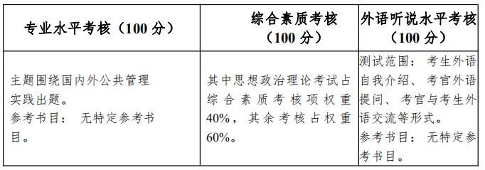 復試內容具體包括專業水平考核、綜合素質考核、外語聽說水平考核等三部分。每位考生復試時間不少于 20 分鐘。