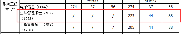 國防科技大學2020年MPA復試基本分數線:223/88/44