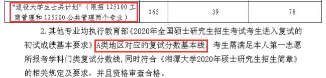湘潭大學2020年MPA復試基本分數線:175/88/44