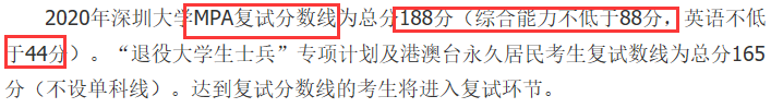 深圳大學2020年MPA復試基本分數(shù)線:188/88/44