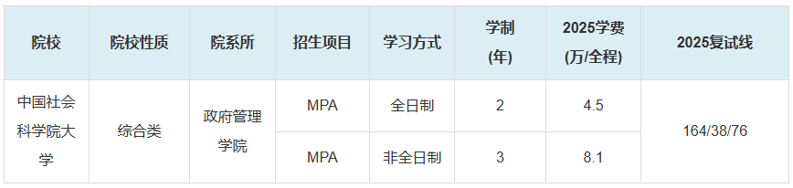 2025年中國社會科學院大學MPA復試分數(shù)線情況如下: