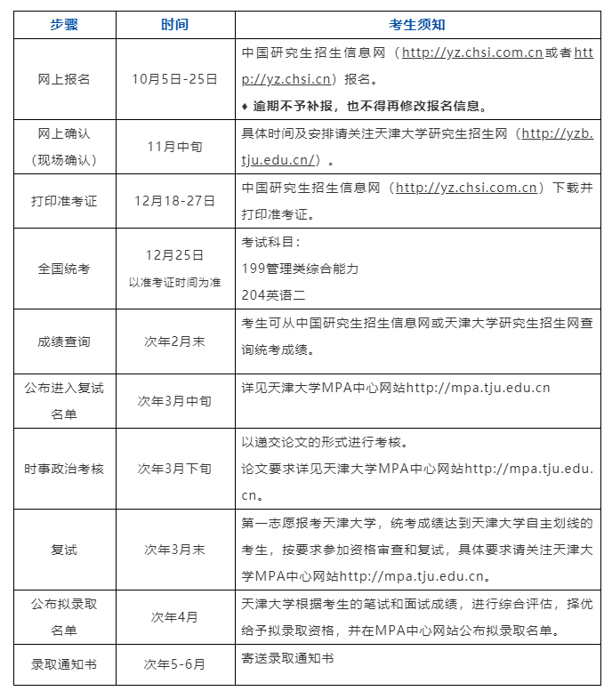 2.凡報考天津大學MPA的考生必須按規定時間在網上提交報名信息,繳納報名費,并按照網站要求確認網報信息,不經確認信息者網上報名無效。