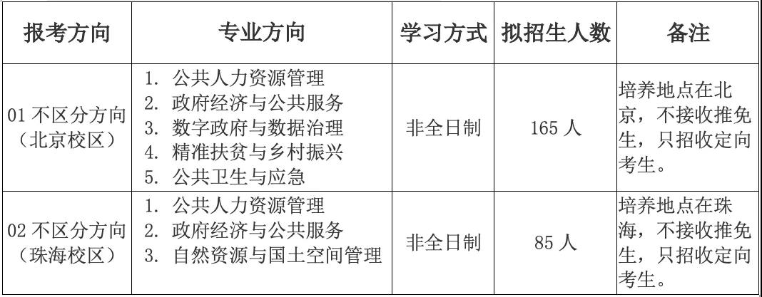 北京師范大學是教育部直屬重點大學,是一所學科實力位居全國高校前列的百年學府,2017年入選世界一流大學建設計劃。北京師范大學是全國首批培養(yǎng)公共管理碩士專業(yè)學位(Master of Public Administration,簡稱MPA)的院校之一,也是首批獲得公共管理一級學科博士學位授予權的高校之一。2018年,北京師范大學公共管理專業(yè)學位教育在全國首次專業(yè)學位水平評估中獲評A-。 基于當前的時代要求和學校自身的定位及特色,北京師范大學MPA教育以“掌握公共管理知識和技能,具備公共服務精神和國際視野,能夠引領經(jīng)濟社會變革和發(fā)展的政府部門及非政府公共機構高層次管理者”為人才培養(yǎng)目標,不斷推動教育模式創(chuàng)新,形成“扎實的學科依托、充足的教學資源、顯著的培養(yǎng)效果、多元的活動服務”的辦學特色,成為國內(nèi)重要的MPA人才培養(yǎng)基地。 二、招生人數(shù)與招生方向 - 招生計劃:擬招收250人。 - 報考方向:2022年招生分“01不區(qū)分方向(北京校區(qū))”和“02不區(qū)分方向(珠海校區(qū))”兩個報考方向。 - 主要招生專業(yè)方向:公共人力資源管理、政府經(jīng)濟與公共服務、數(shù)字政府與數(shù)據(jù)治理、自然資源與國土空間管理、精準扶貧與鄉(xiāng)村振興、公共衛(wèi)生與應急。 不同報考方向(校區(qū))招生計劃見下表: 說明:10月網(wǎng)上報名時只填報報考方向,正式錄取后再分專業(yè)方向。 三、報考條件 考生報名須滿足以下條件: 1.考生須為中華人民共和國公民,擁護中國共產(chǎn)黨的領導,品德良好,遵紀守法。 2.身體健康狀況符合國家和我校規(guī)定的體檢要求。 3.學歷和工作條件必須符合下列情況之一: (1)獲得國家承認的大學本科學歷已滿3年并有相應的工作經(jīng)歷(從畢業(yè)后到2022年9月前)。 (2)獲得國家承認的高職高專學歷已滿5年并有相應的工作經(jīng)歷(從畢業(yè)后到2022年9月前)。 (3)獲碩士、博士學位已滿2年并有相應的工作經(jīng)歷。 (4)在境外獲得的學歷(學位)證書須通過(中國)教育部留學服務中心認證,資格審查時須提交認證報告。 非應屆在讀研究生(含單證專業(yè)學位碩士生)報考,須在報名前征得就讀院校同意,并在錄取時先辦理原就讀院校的退學手續(xù)。我校不允許研究生同時攻讀兩個以上(含)不同層次或相同層次的學位。 四、報名 考生報名前應仔細閱讀我校的報考條件,確認完全符合條件后再進行網(wǎng)上報名。網(wǎng)上報名時必須如實、準確地填寫信息。不符合報考條件或弄虛作假者一律不予錄取,報考資格審核將在錄取階段進行。 報名包括網(wǎng)上報名和網(wǎng)上(現(xiàn)場)確認兩個階段,缺一不可。考生應于2021年10月(具體以教育部公布的時間為準)登陸“中國研究生招生信息網(wǎng)(http://yz.chsi.com.cn)”瀏覽報考須知,按教育部、省級教育招生考試管理機構、報考點以及報考招生單位的網(wǎng)上公告要求報名,并于規(guī)定時間到報考點進行網(wǎng)上(現(xiàn)場)確認。考生應認真核對報名信息,報名結(jié)束后報名信息不允許修改,因填寫錯誤造成的一切后果由考生本人承擔。 報名關鍵信息提醒 - 報考專業(yè): 公共管理(專業(yè)學位碩士,專業(yè)代碼125200) - 考試科目: 管理類聯(lián)考綜合能力(199)、英語二(204) - 報考類別: 定向就業(yè) 報名費直接在“中國研究生招生信息網(wǎng)”繳納。逾期不再補報,也不得再修改報名信息。 五、考試 考試分初試和復試兩階段。 (一)初試 1.初試時間:2021年12月25日至12月26日(每天上午8:30-11:30,下午14:00-17:00)。 2.初試科目 ① 199-管理類聯(lián)考綜合能力(滿分200分)、② 204-英語二(滿分100分),均為筆試。 其中管理類聯(lián)考綜合能力為全國聯(lián)考科目,內(nèi)容請參考教育部考試中心編制的最新考試大綱;英語二為全國統(tǒng)考科目,內(nèi)容請參考教育部考試中心統(tǒng)一編制的最新考試大綱。 3.準考證從中國研究生招生信息網(wǎng)下載。考生憑準考證及有效居民身份證參加初試。 (二)復試(考前面試與正常批復試) 1.考前面試 (1)考前面試日程安排(2022年考前面試申請工作已結(jié)束) 2.正常批復試 正常批復試包括以下三類考生: ① 初試成績達到我校MPA復試線,參加考前面試但未獲得有條件錄取資格或未獲得遞補資格的考生; ② 初試成績達到我校復試線,參加考前面試獲得遞補資格,但未遞補成功的考生; ③ 初試成績達到我校MPA復試線,未參加考前面試的考生。 復試大約安排在2022年3月中下旬,屆時將在我校研究生招生網(wǎng)公布具體時間。 (1)考前預錄取 ① 參加考前面試并獲得“有條件錄取資格”的考生,初試成績達到北京師范大學自主劃線分數(shù)/國家線、報考資格和學歷檔案復審無誤后,即可直接獲得擬錄取資格。 ② 獲得“遞補資格”的考生,可在“有條件錄取資格”考生放棄或者初試成績沒有達到北京師范大學自主劃線分數(shù)/國家線的情況下,按照考前面試成績由高到低的排序依次遞補,獲得“有條件錄取資格”。 未通過遞補獲得“有條件錄取資格”的考生,自動進入正常批錄取程序。 注:2022年本專業(yè)分數(shù)線是否按照北京師范大學自主劃線分數(shù)/國家線,請屆時以北京師范大學研招辦發(fā)布的信息為準。 (2)正常批復試錄取 正常批復試的考生,按照報考