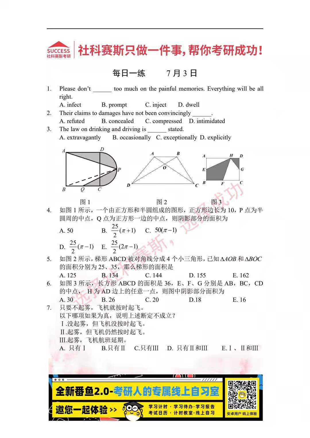 2022管理類聯(lián)考7月3日每日一練及答案”
