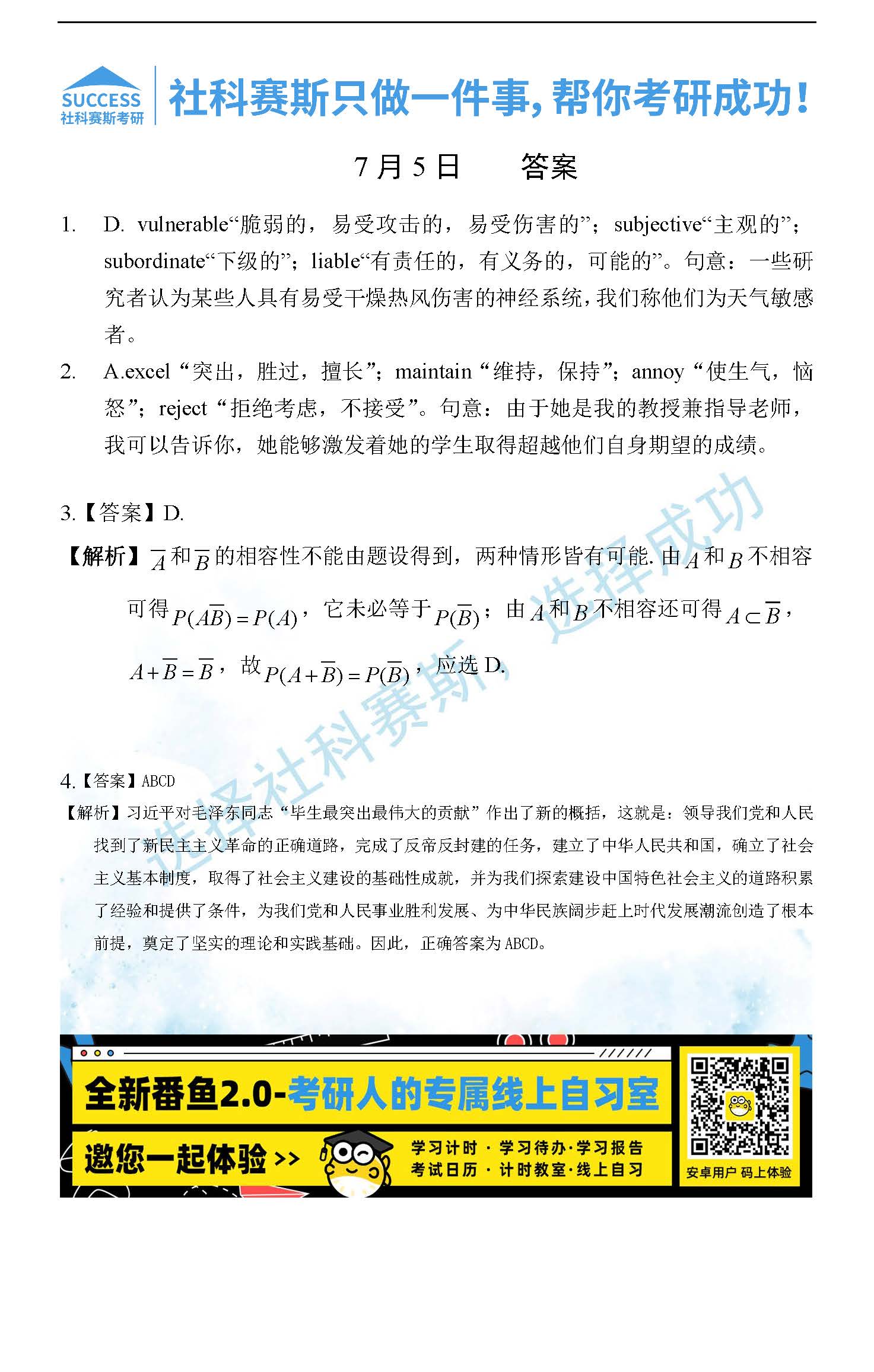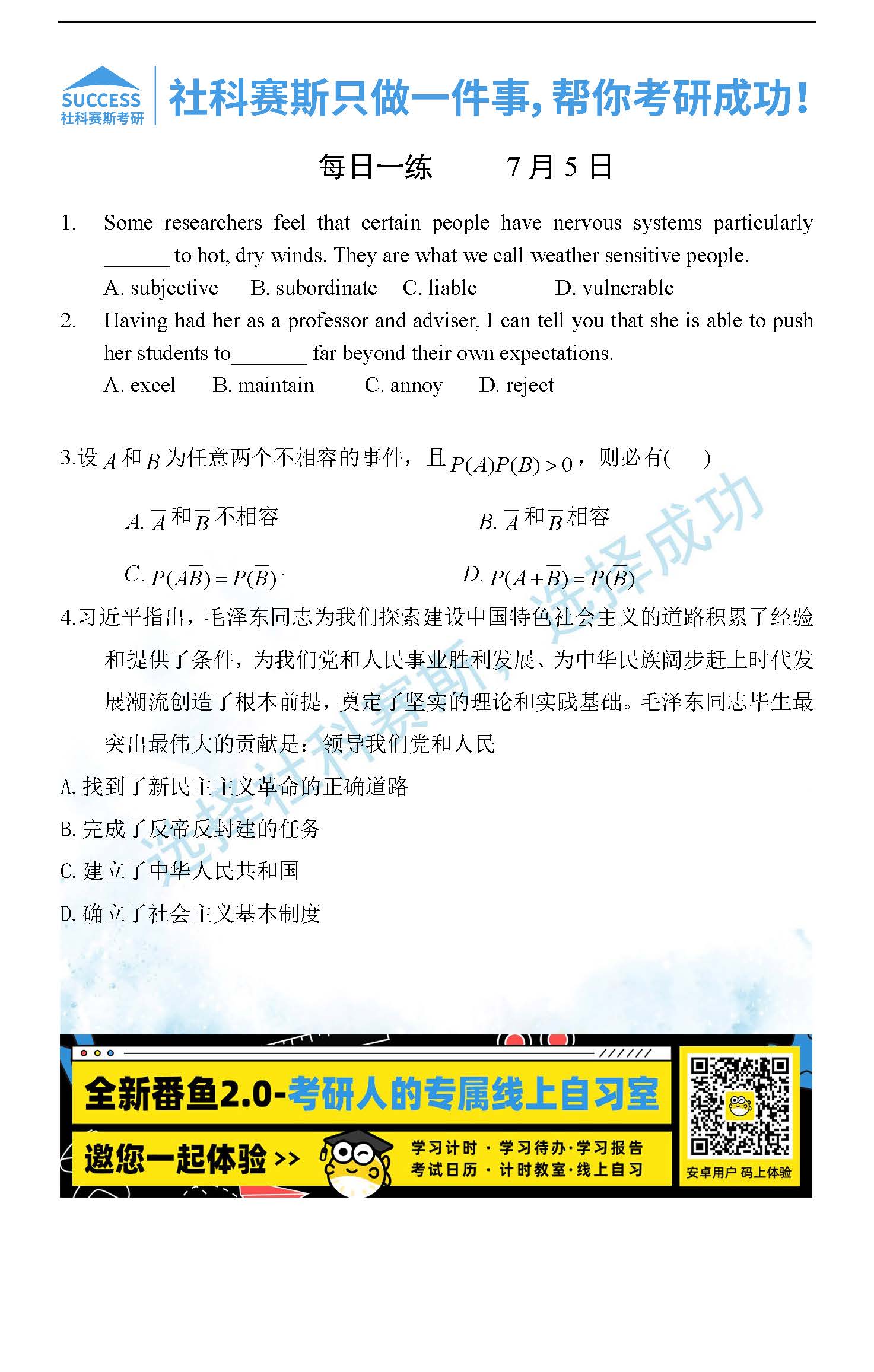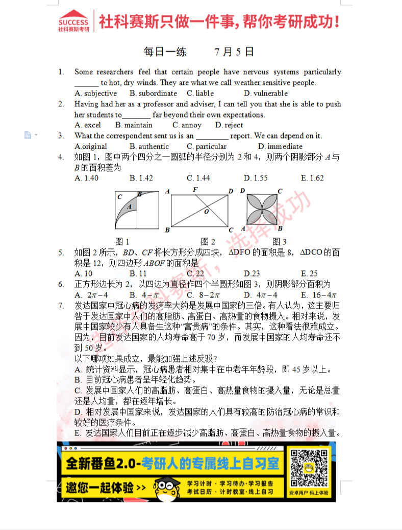 以上就是社科賽斯MBA備考網(wǎng)小編為大家整理“2022管理類聯(lián)考7月5日每日一練及答案”的全部內(nèi)容,希望各位考生堅持利用起來,更多每日一練內(nèi)容請持續(xù)關(guān)注MBA備考網(wǎng)管理類聯(lián)考每日一練。