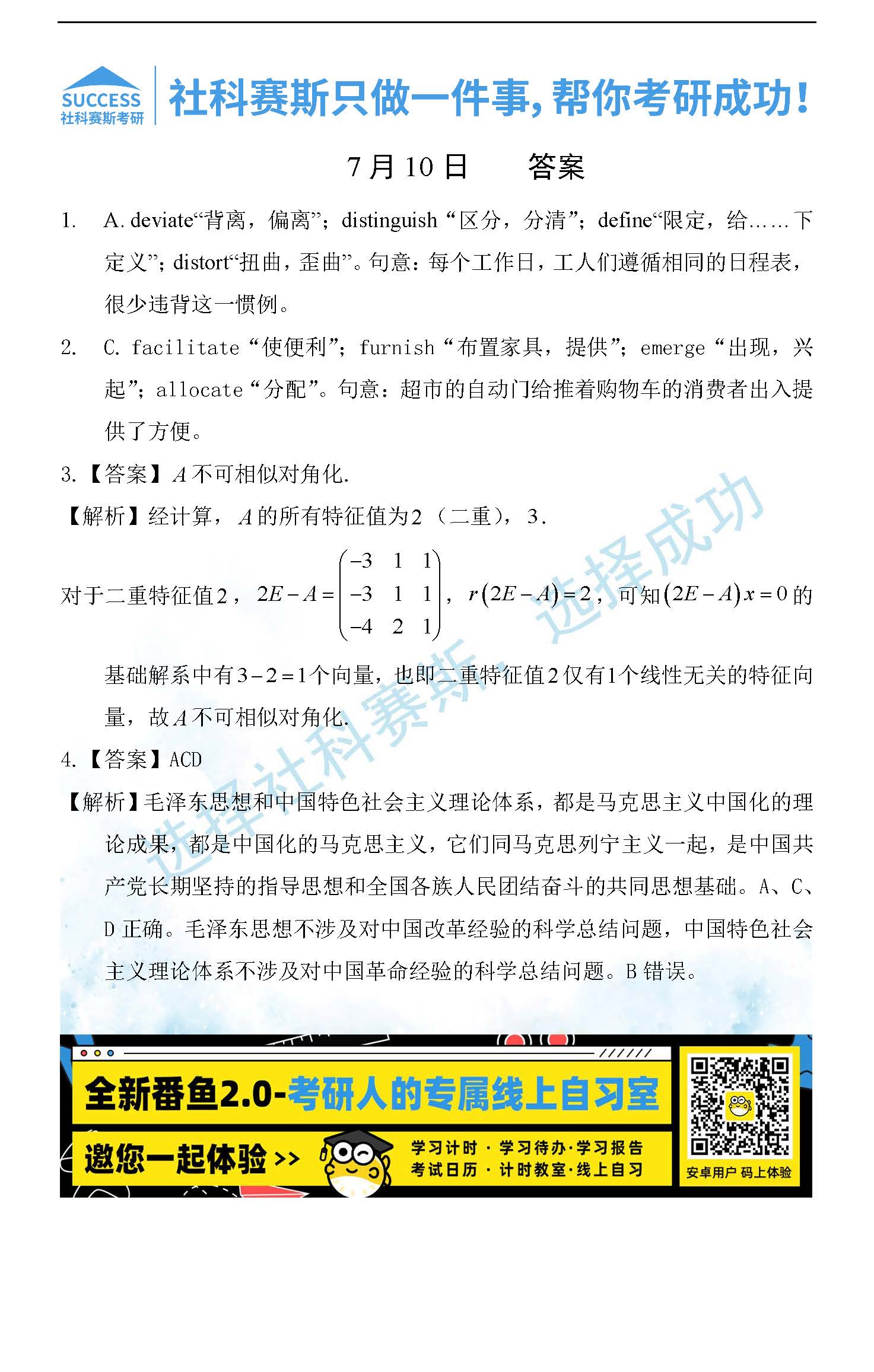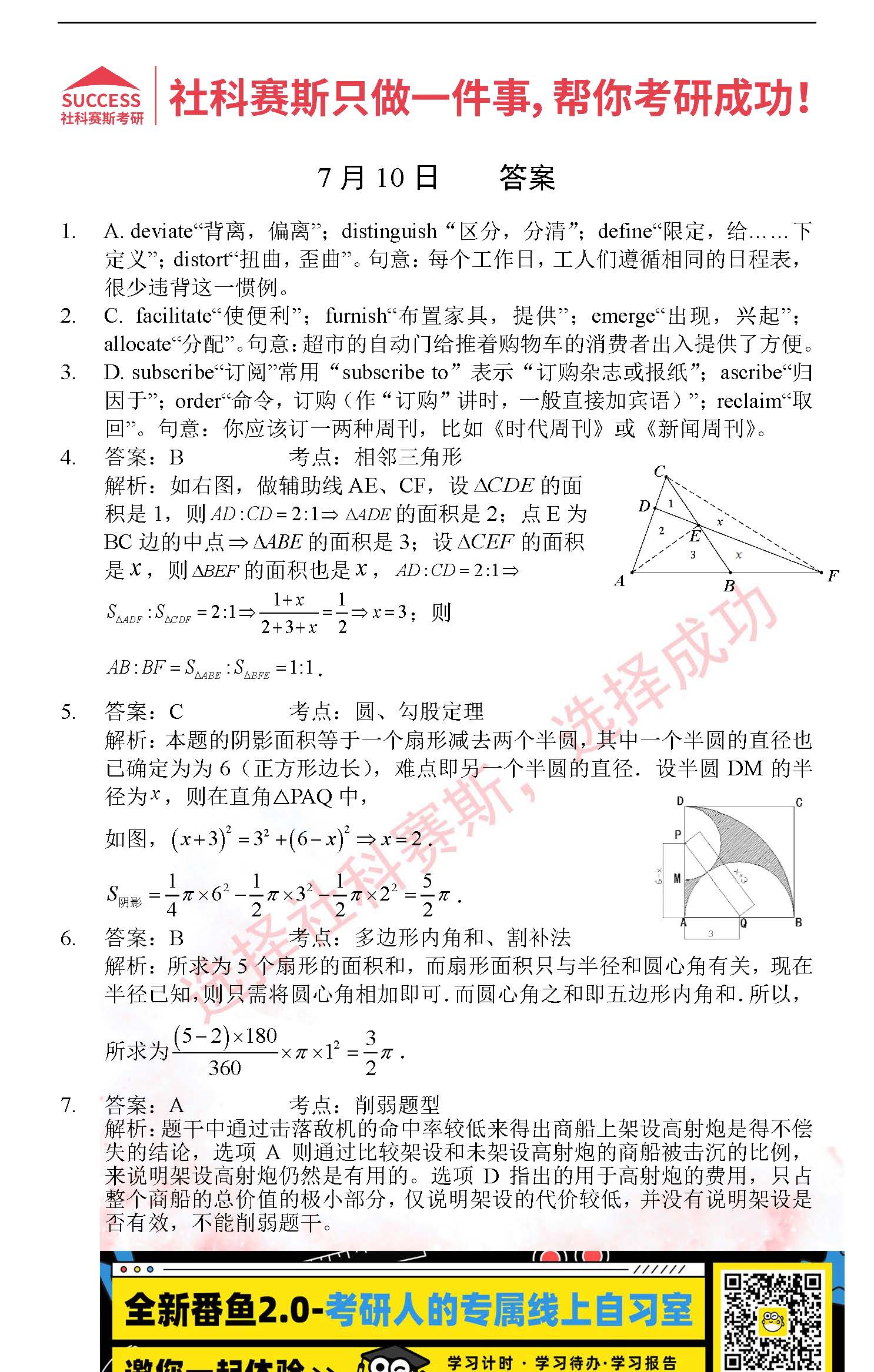 以上就是社科賽斯MBA備考網小編為大家整理“2022管理類聯考7月10日每日一練及答案”的全部內容,希望各位考生堅持利用起來,更多每日一練內容請持續關注MBA備考網管理類聯考每日一練。