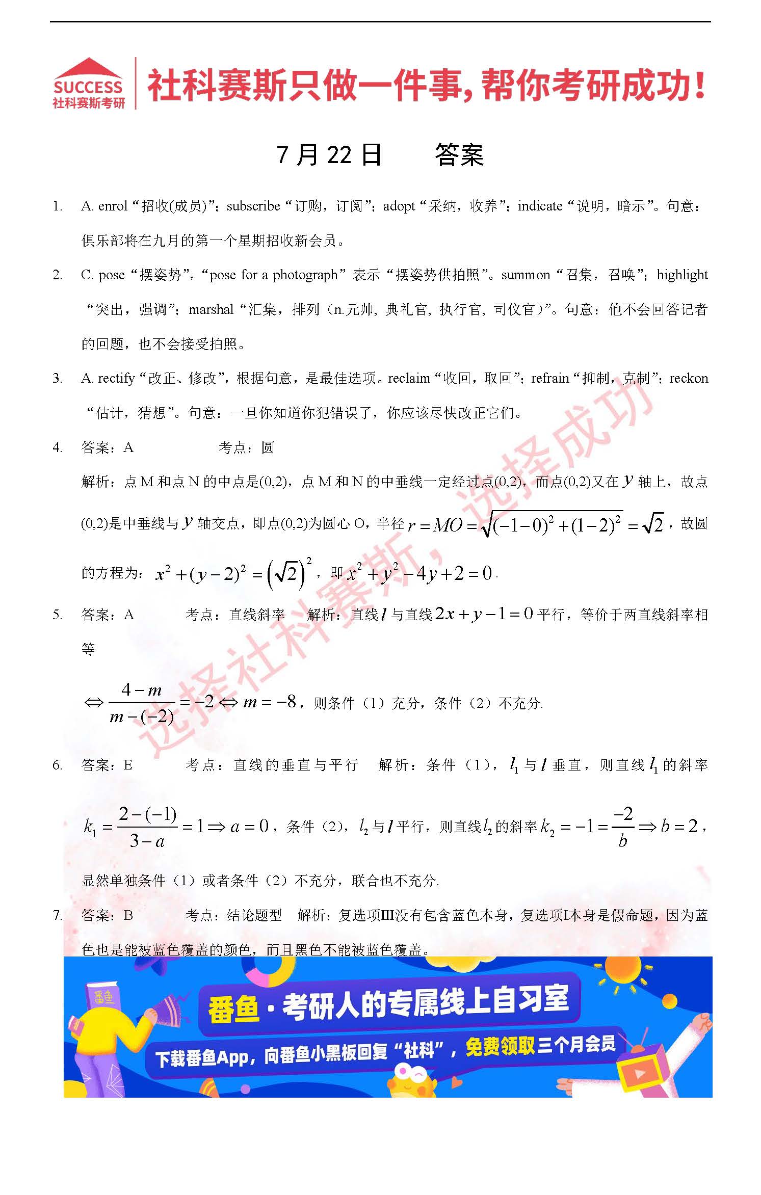 導(dǎo)讀:考研是一場持久戰(zhàn),保持良好的學(xué)習(xí)習(xí)慣,是能確保復(fù)習(xí)高效的關(guān)鍵。今天社科賽斯MBA備考網(wǎng)小編整理了“2022管理類聯(lián)考7月22日每日一練及答案”的內(nèi)容,希望能對廣大考生有所幫助。