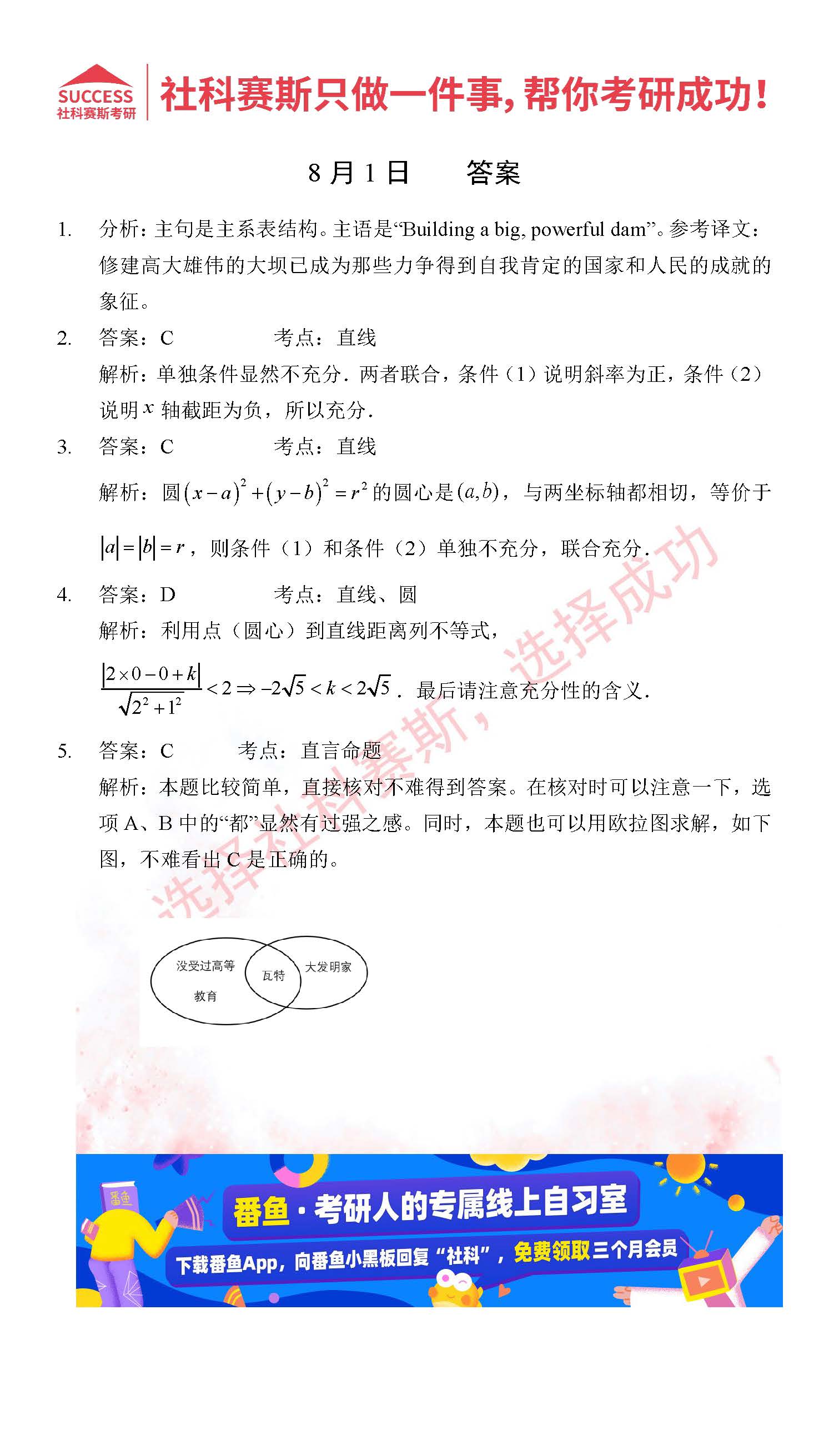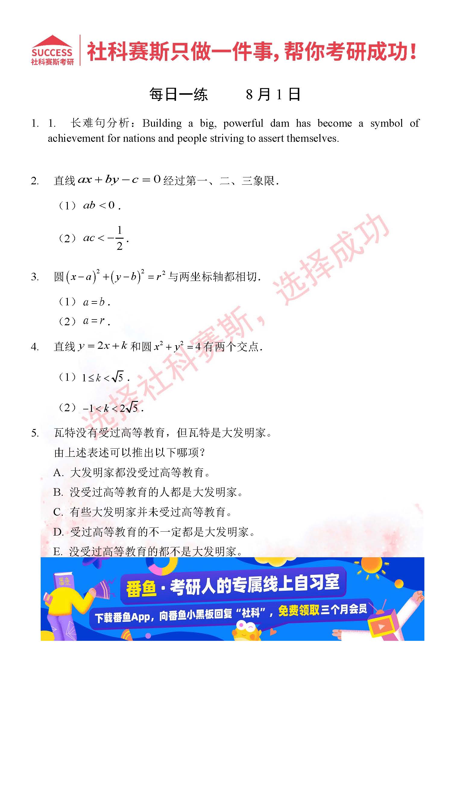 導(dǎo)讀:考研是一場持久戰(zhàn),保持良好的學習習慣,是能確保復(fù)習高效的關(guān)鍵。今天社科賽斯MBA備考網(wǎng)小編整理了“2022管理類聯(lián)考8月1日每日一練及答案”的內(nèi)容,希望能對廣大考生有所幫助。