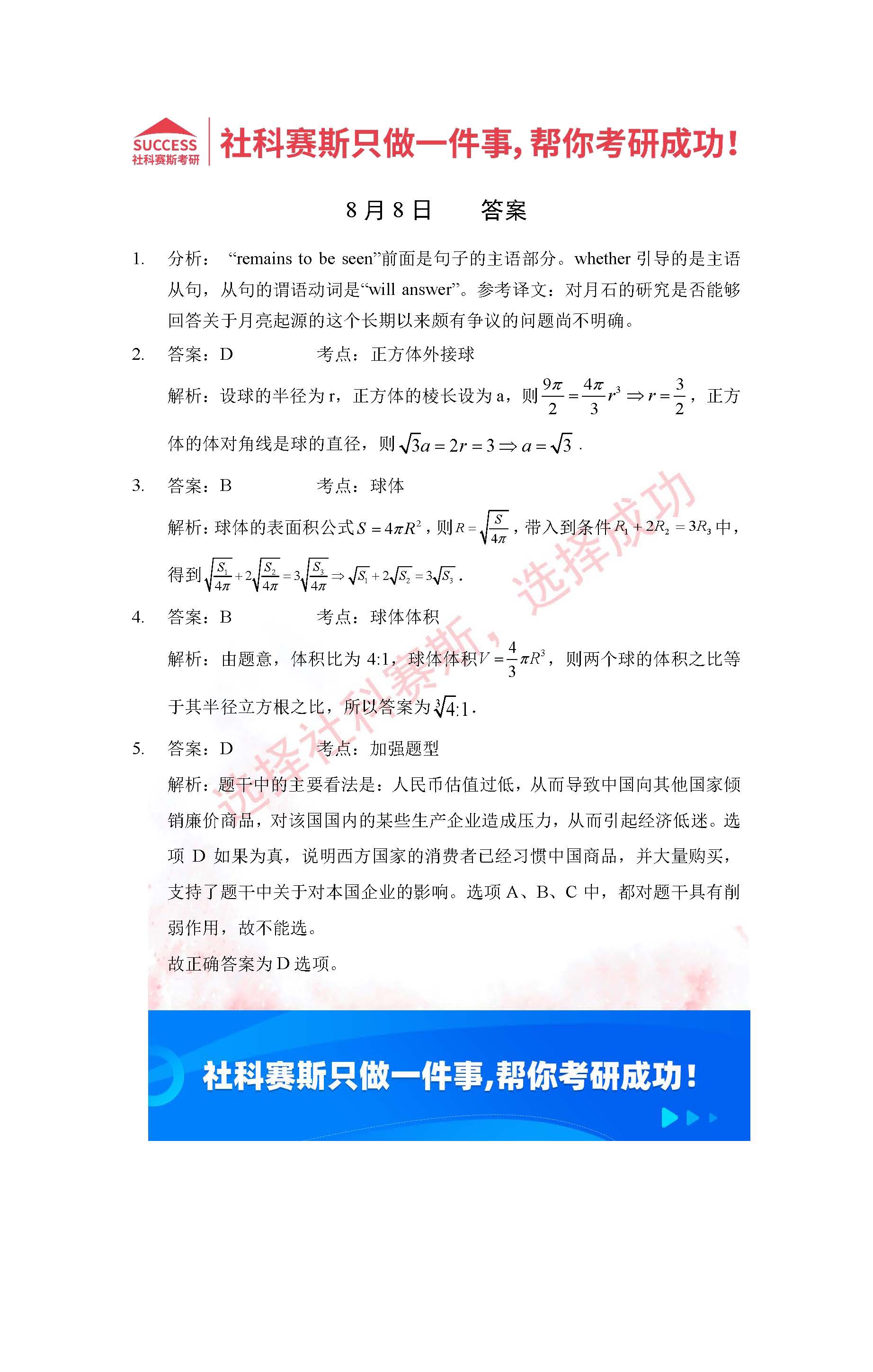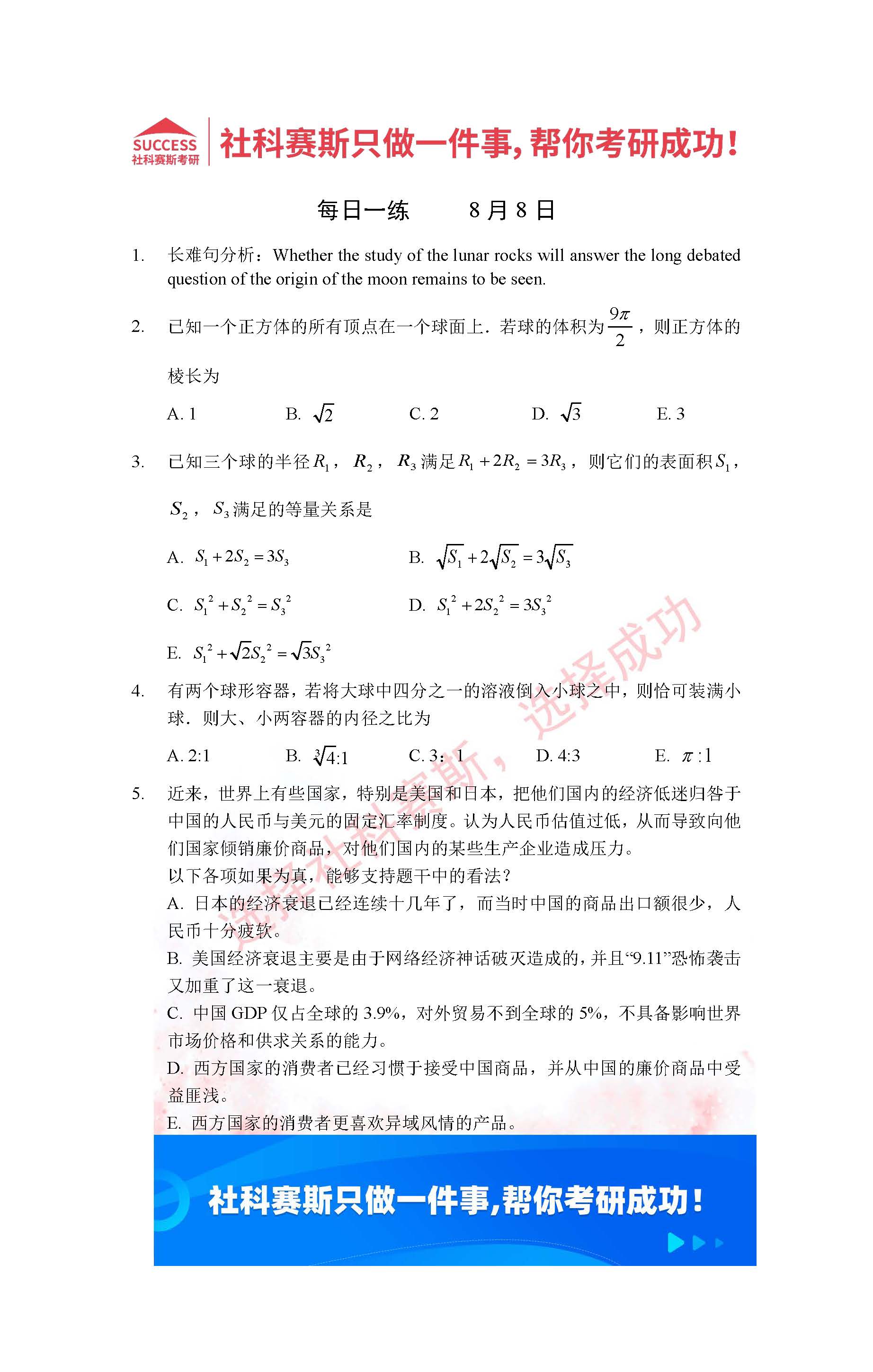 導(dǎo)讀:考研是一場(chǎng)持久戰(zhàn),保持良好的學(xué)習(xí)習(xí)慣,是能確保復(fù)習(xí)高效的關(guān)鍵。今天社科賽斯MBA備考網(wǎng)小編整理了“2022管理類(lèi)聯(lián)考8月8日每日一練及答案”的內(nèi)容,希望能對(duì)廣大考生有所幫助。