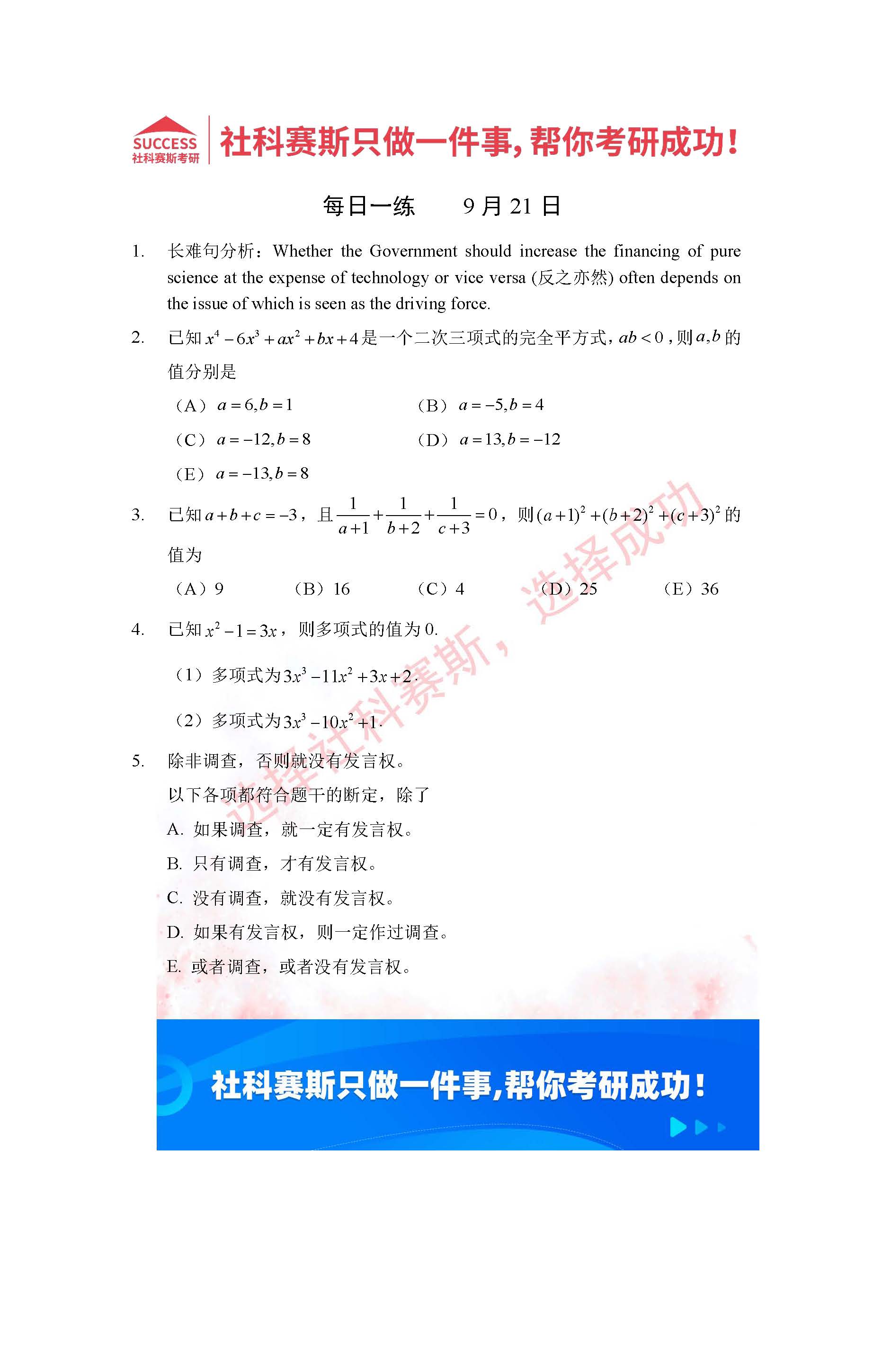 導讀:考研是一場持久戰,保持良好的學習習慣,是能確保復習高效的關鍵。今天社科賽斯MBA備考網小編整理了“2022管理類聯考9月21日每日一練及答案”的內容,希望能對廣大考生有所幫助。