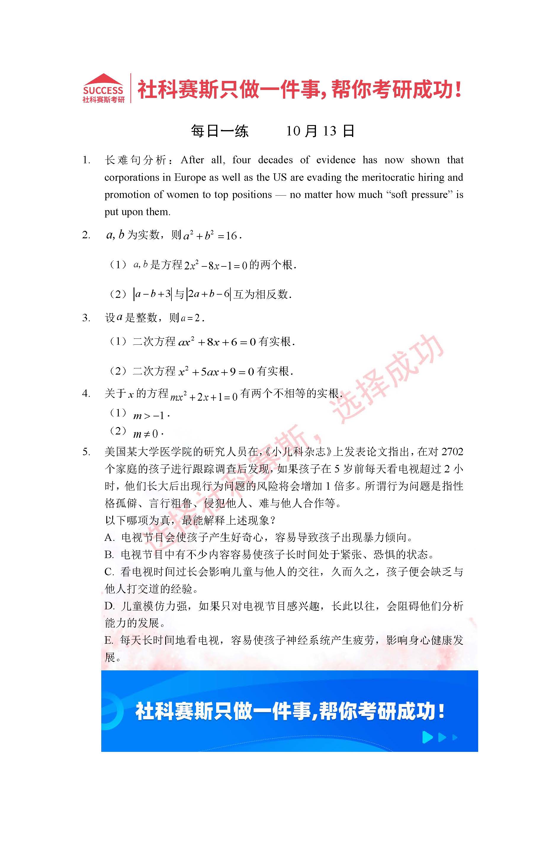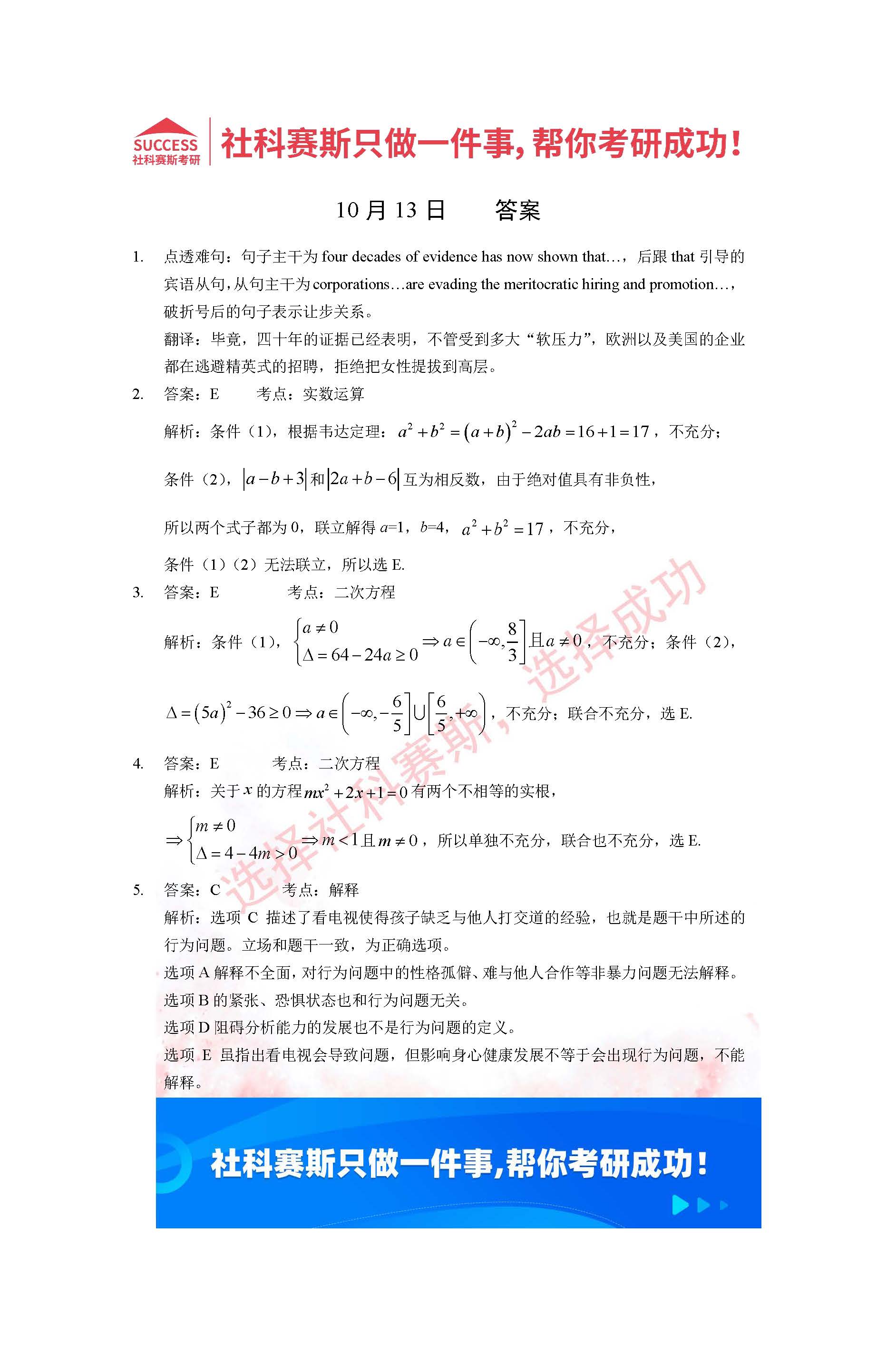 導讀:考研是一場持久戰,保持良好的學習習慣,是能確保復習高效的關鍵。今天社科賽斯MBA備考網小編整理了“2022管理類聯考10月13日每日一練及答案”的內容,希望能對廣大考生有所幫助。
