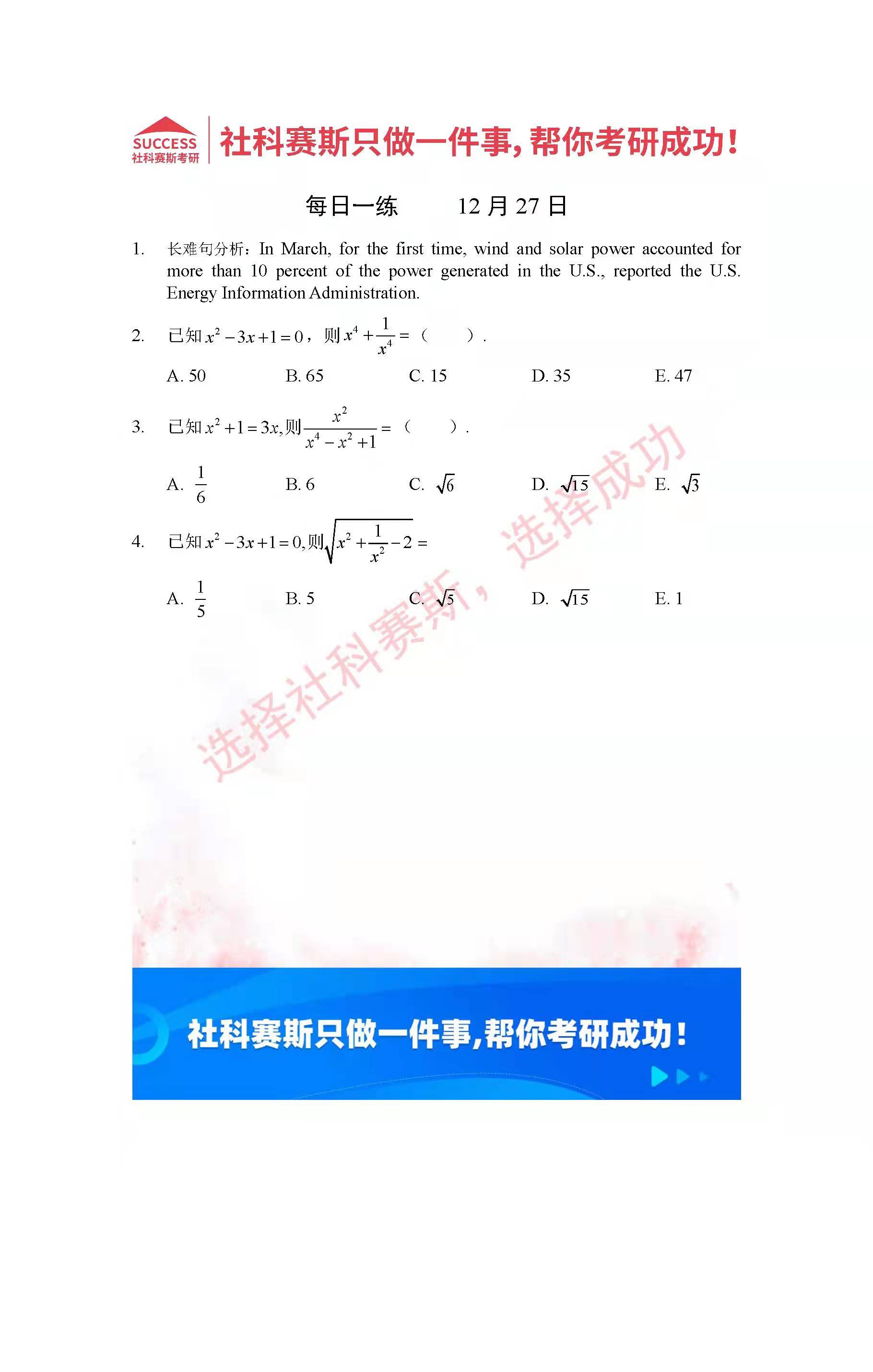導讀:考研是一場持久戰,保持良好的學習習慣,是能確保復習高效的關鍵。今天社科賽斯MBA備考網小編整理了“2022管理類聯考12月27日每日一練及答案”的內容,希望能對廣大考生有所幫助。