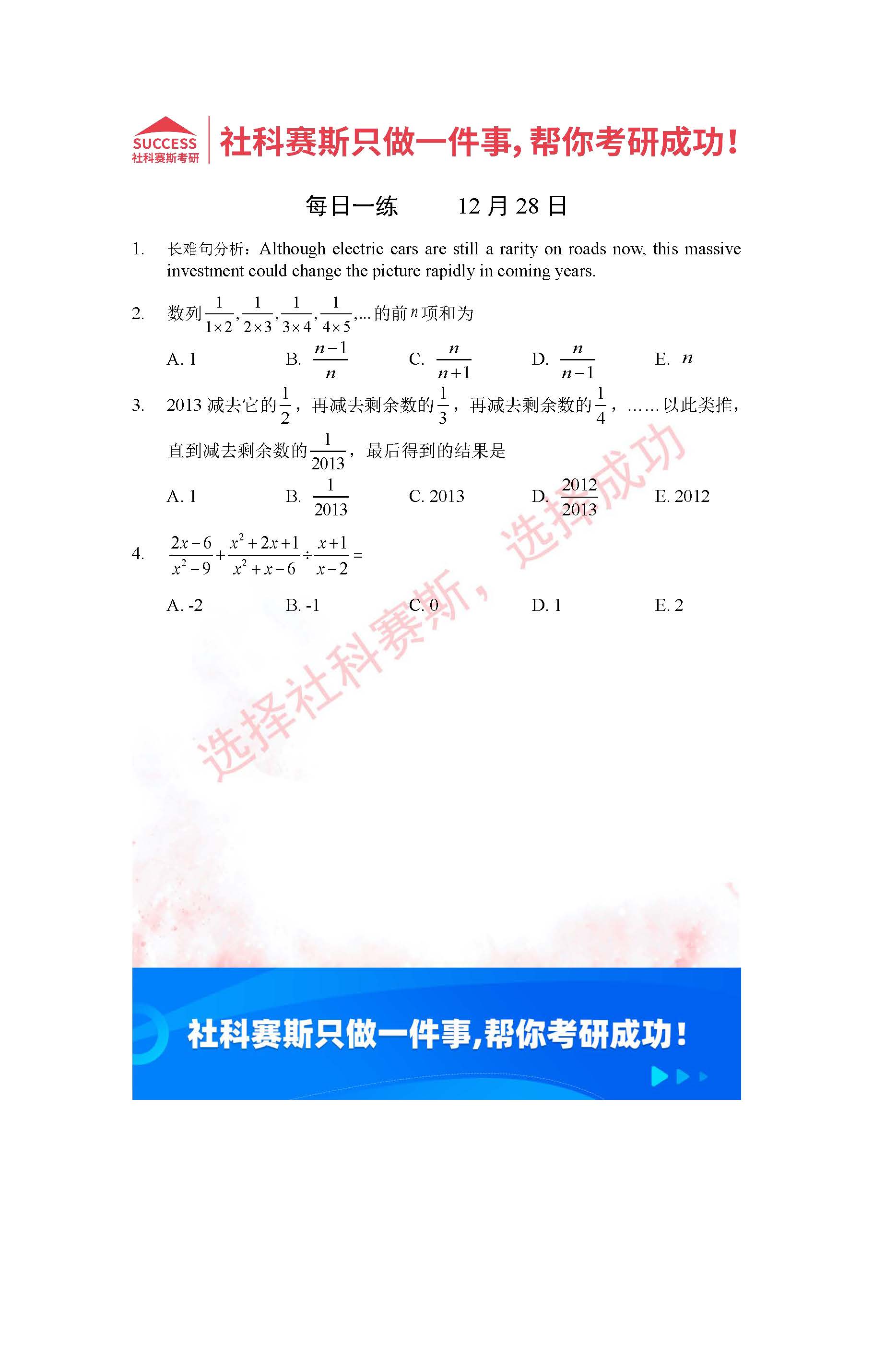 導讀:考研是一場持久戰,保持良好的學習習慣,是能確保復習高效的關鍵。今天社科賽斯MBA備考網小編整理了“2022管理類聯考12月28日每日一練及答案”的內容,希望能對廣大考生有所幫助。