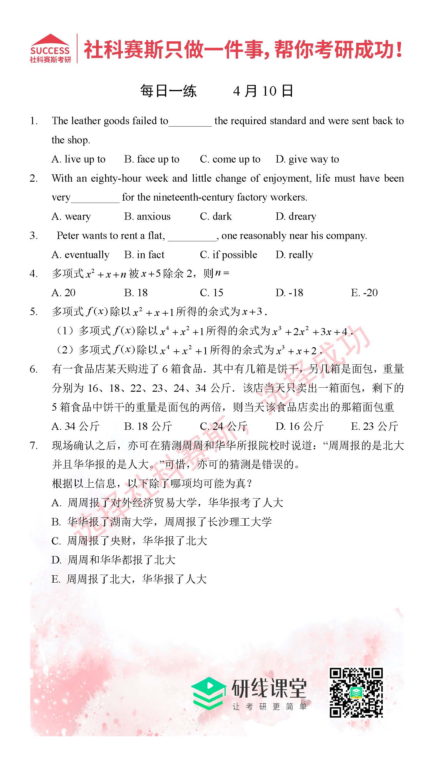 導(dǎo)讀:考研是一場(chǎng)持久戰(zhàn),保持良好的學(xué)習(xí)習(xí)慣,是能確保復(fù)習(xí)高效的關(guān)鍵。MBA備考網(wǎng)小編整理了管綜的每日一練,希望能對(duì)廣大考生有所幫助。
