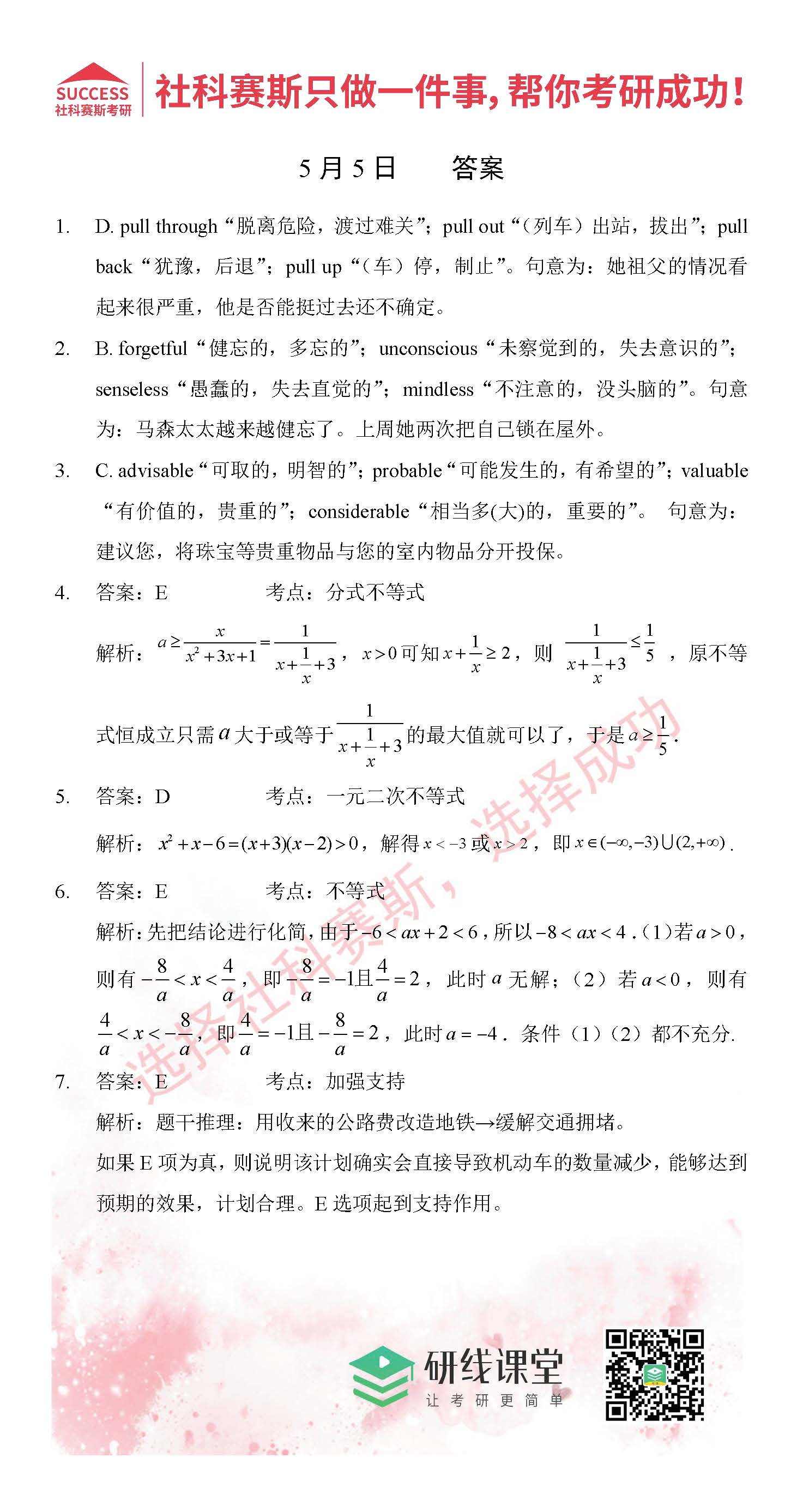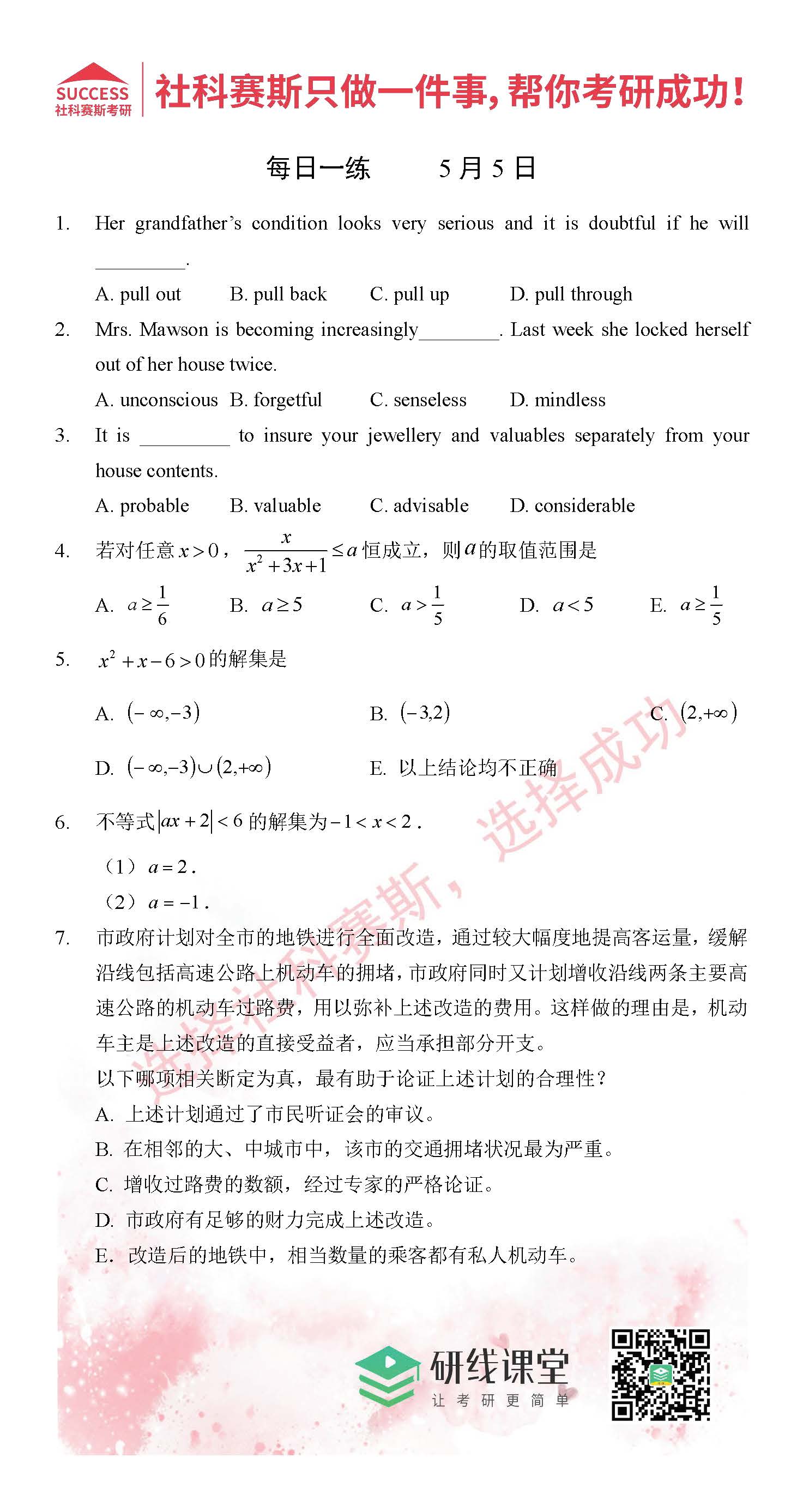 導讀:考研是一場持久戰,保持良好的學習習慣,是能確保復習高效的關鍵。MBA備考網小編整理了管綜的每日一練,希望能對廣大考生有所幫助。