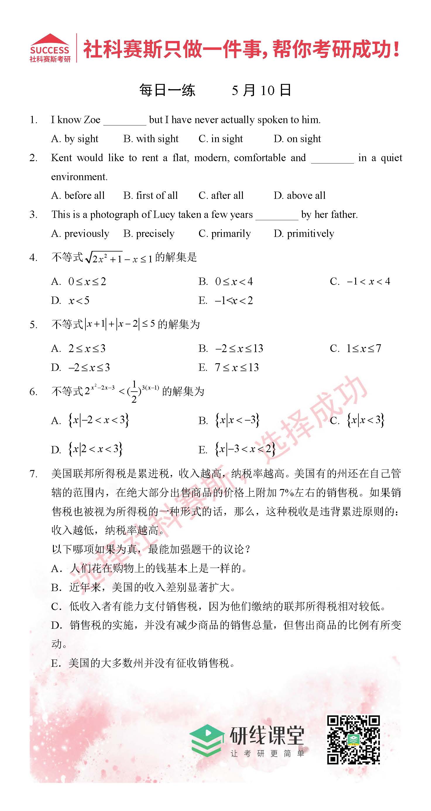導(dǎo)讀:考研是一場(chǎng)持久戰(zhàn),保持良好的學(xué)習(xí)習(xí)慣,是能確保復(fù)習(xí)高效的關(guān)鍵。MBA備考網(wǎng)小編整理了管綜的每日一練,希望能對(duì)廣大考生有所幫助。