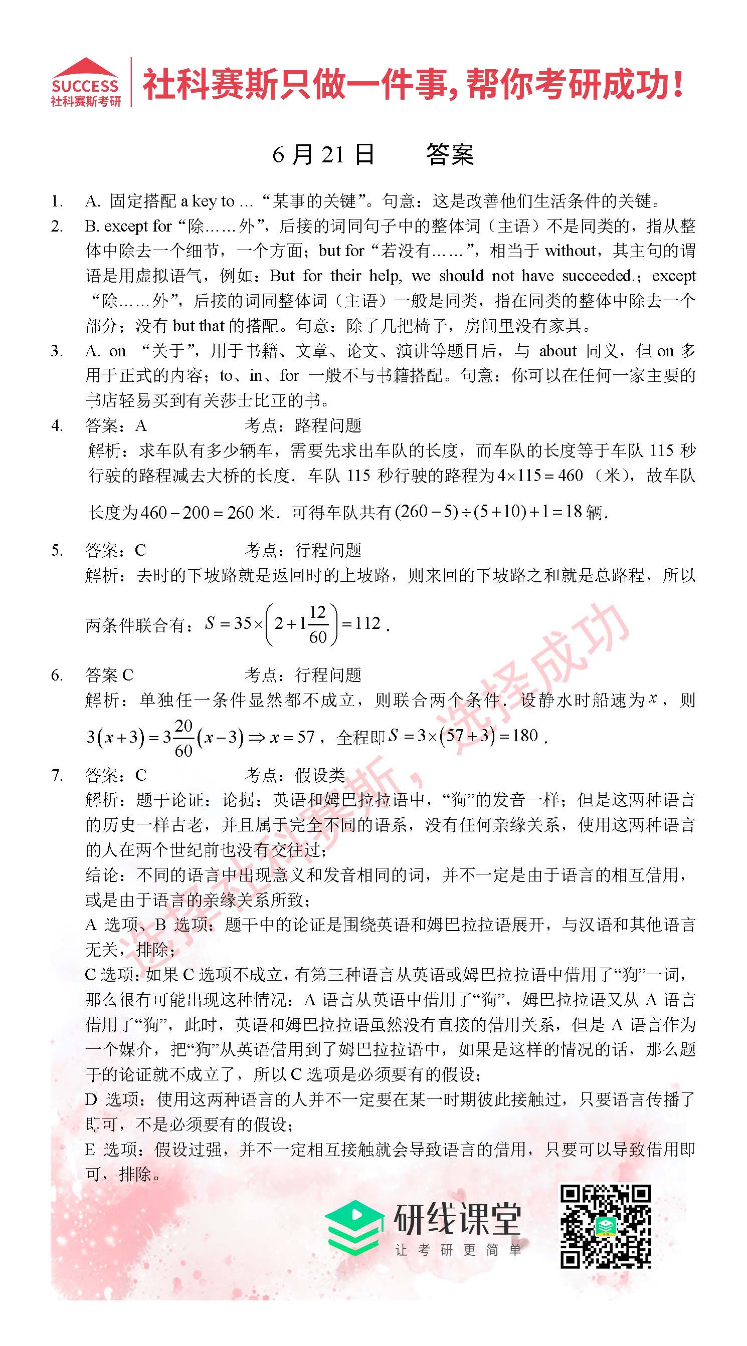 為了使大家保持良好的學習習慣,MBA備考網小編整理了管綜的每日一練“2021管理類聯考6月21日每日一練及答案”,希望能對廣大考生有所幫助。
