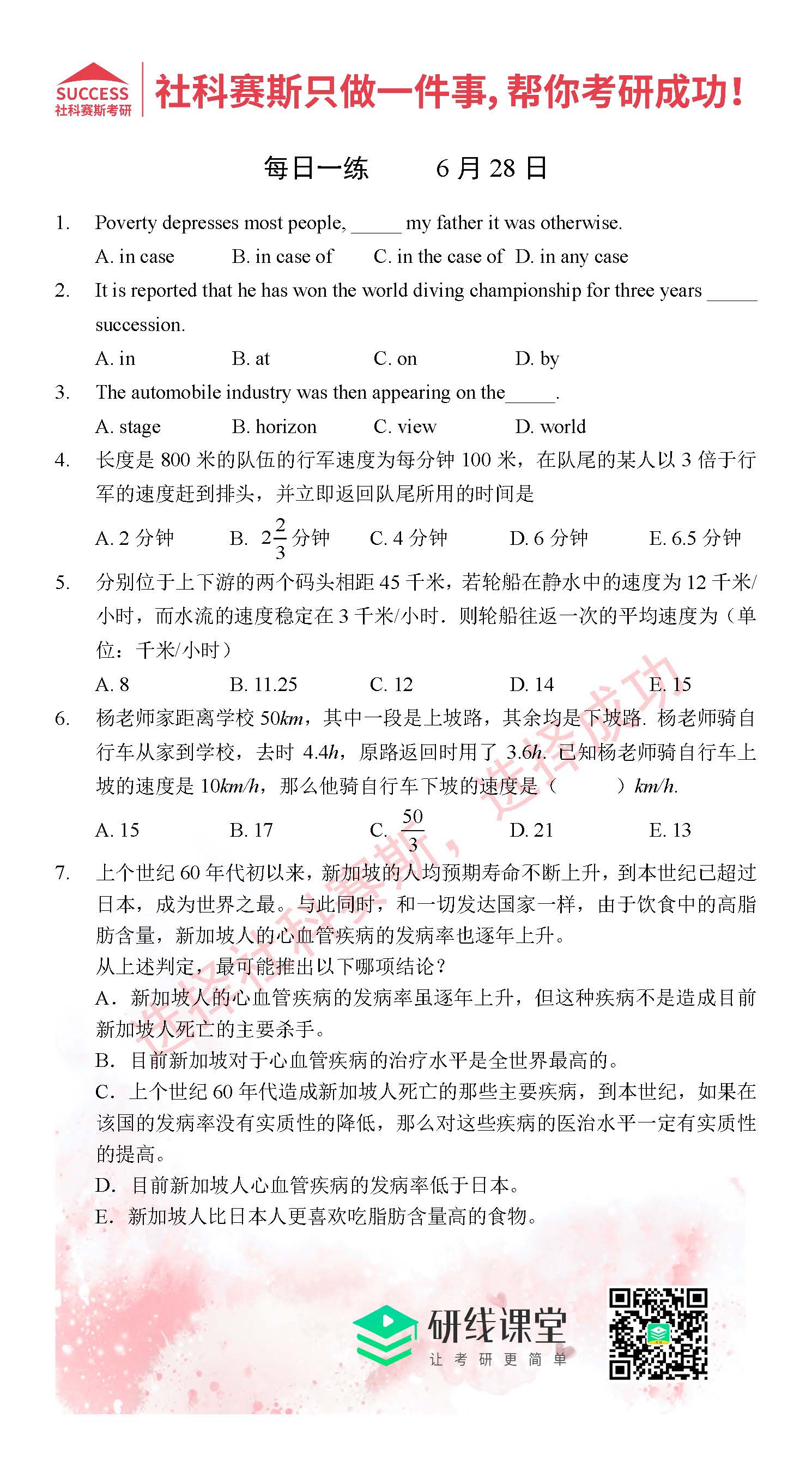 以上就是MBA備考網小編為大家提供的今日的每日一練“2021管理類聯考6月28日每日一練及答案”的全部內容,希望各位考生堅持利用起來,更多每日一練內容請持續關注MBA備考網管理類聯考每日一練。