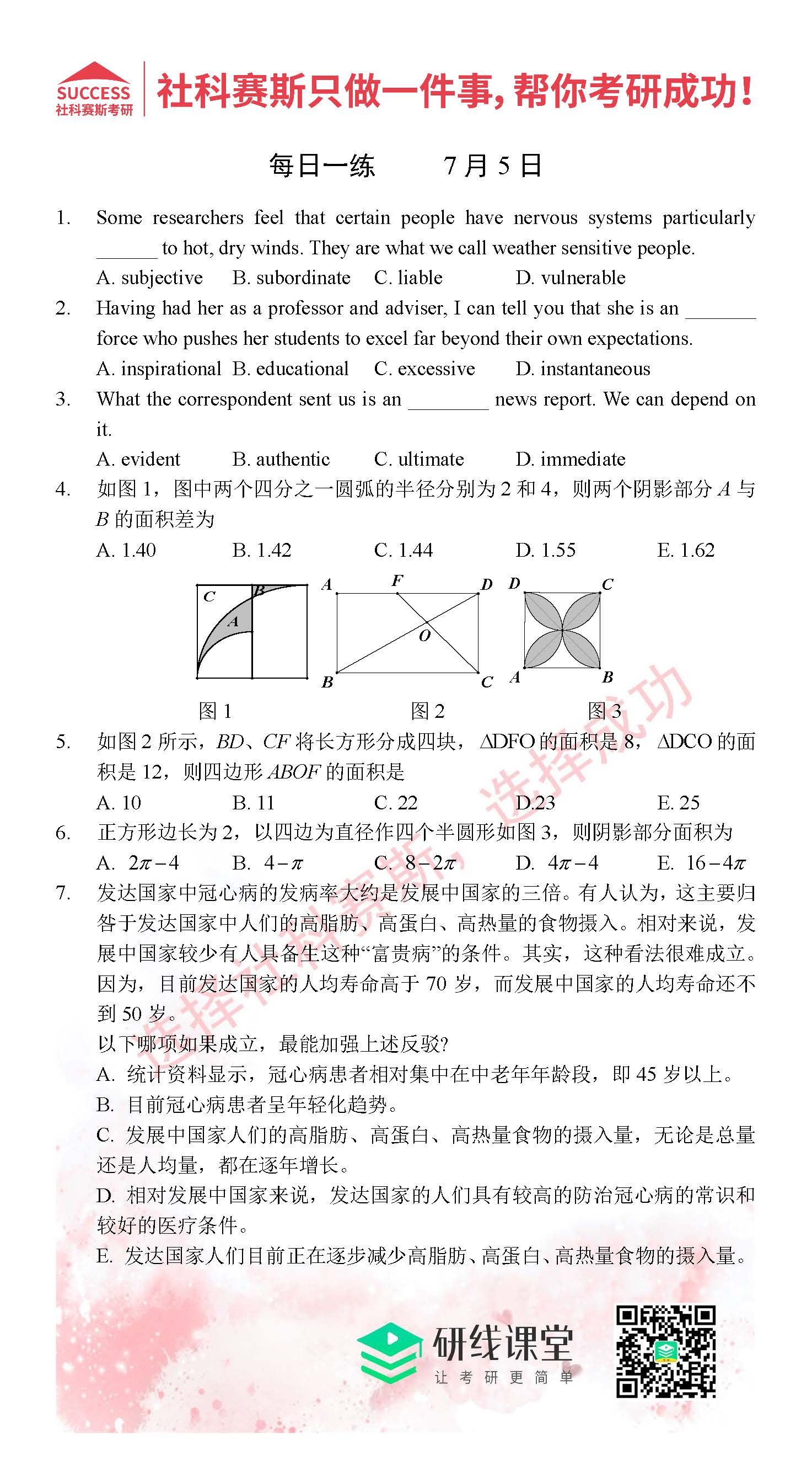 以上就是MBA備考網小編為大家提供的今日的每日一練“2021管理類聯考7月5日每日一練及答案”的全部內容,希望各位考生堅持利用起來,更多每日一練內容請持續關注MBA備考網管理類聯考每日一練