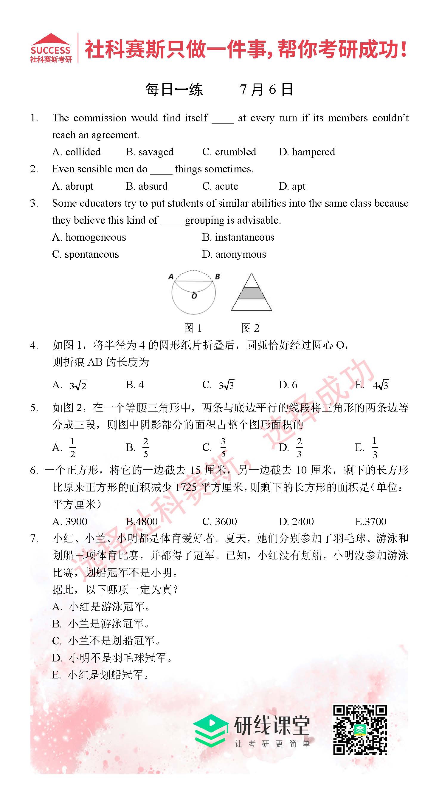 導(dǎo)讀:考研是一場(chǎng)持久戰(zhàn),保持良好的學(xué)習(xí)習(xí)慣,是能確保復(fù)習(xí)高效的關(guān)鍵。MBA備考網(wǎng)小編整理了管綜的每日一練,希望能對(duì)廣大考生有所幫助。