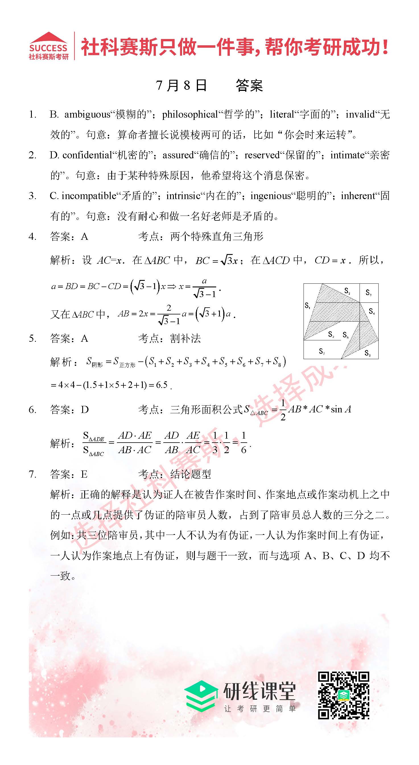 以上就是MBA備考網小編為大家提供的今日的每日一練“2021管理類聯考7月8日每日一練及答案”的全部內容,希望各位考生堅持利用起來,更多每日一練內容請持續關注MBA備考網管理類聯考每日一練