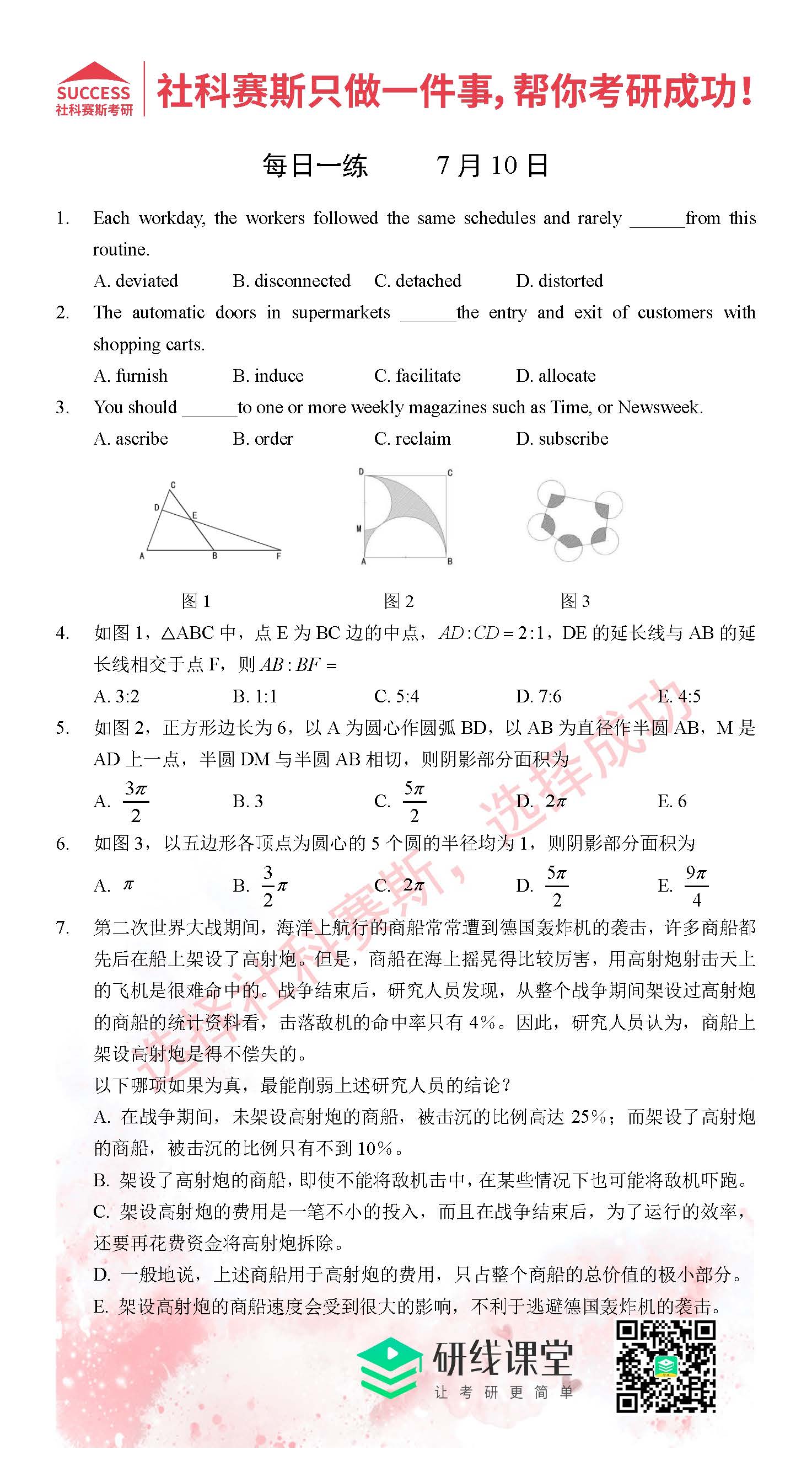 以上就是MBA備考網小編為大家提供的今日的每日一練“2021管理類聯考7月10日每日一練及答案”的全部內容,希望各位考生堅持利用起來,更多每日一練內容請持續關注MBA備考網管理類聯考每日一練