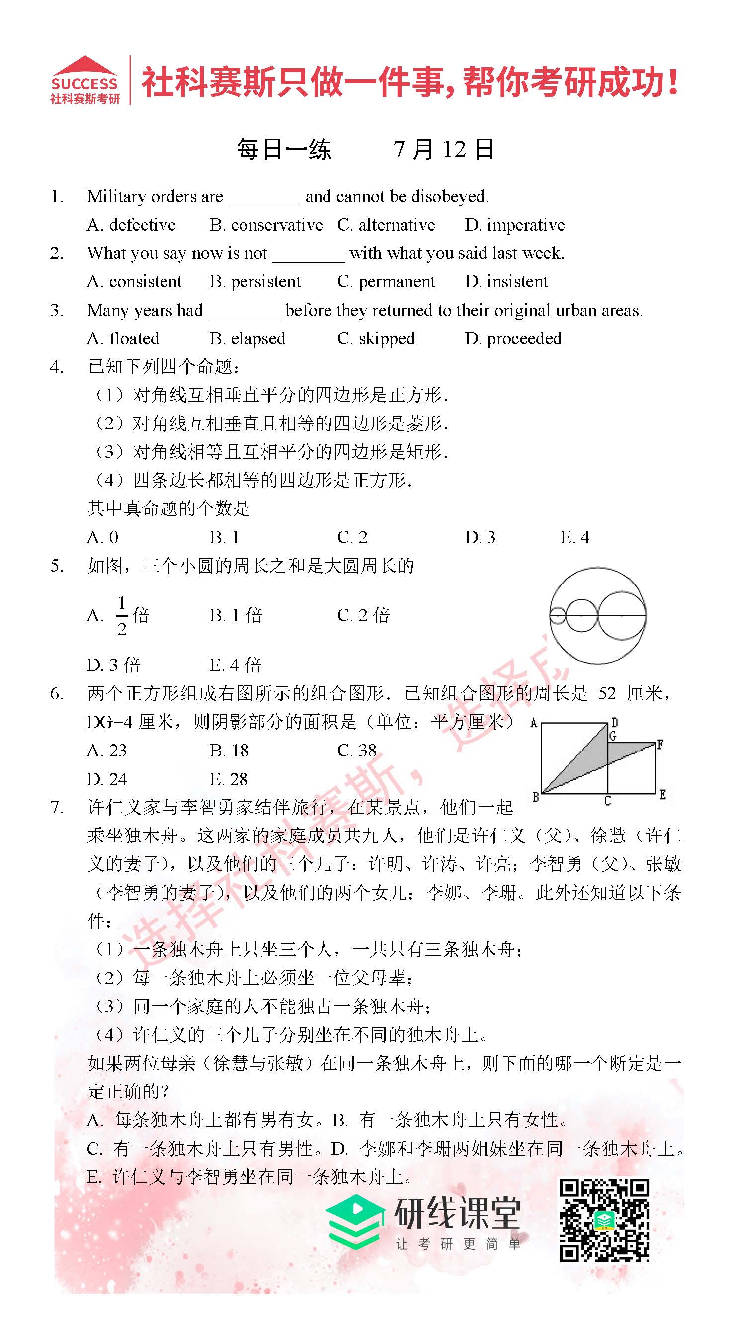 導(dǎo)讀:考研是一場持久戰(zhàn),保持良好的學(xué)習(xí)習(xí)慣,是能確保復(fù)習(xí)高效的關(guān)鍵。MBA備考網(wǎng)小編整理了管綜的每日一練,希望能對(duì)廣大考生有所幫助。