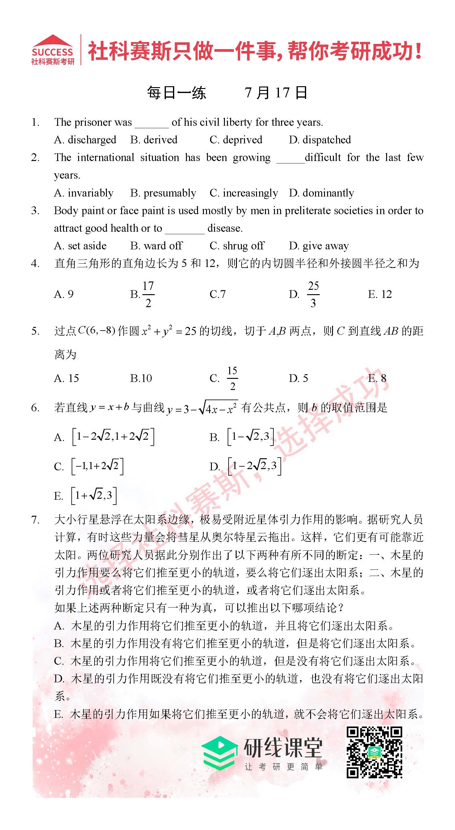 以上就是MBA備考網小編為大家提供的今日的每日一練“2021管理類聯考7月17日每日一練及答案”的全部內容,希望各位考生堅持利用起來,更多每日一練內容請持續關注MBA備考網管理類聯考每日一練。