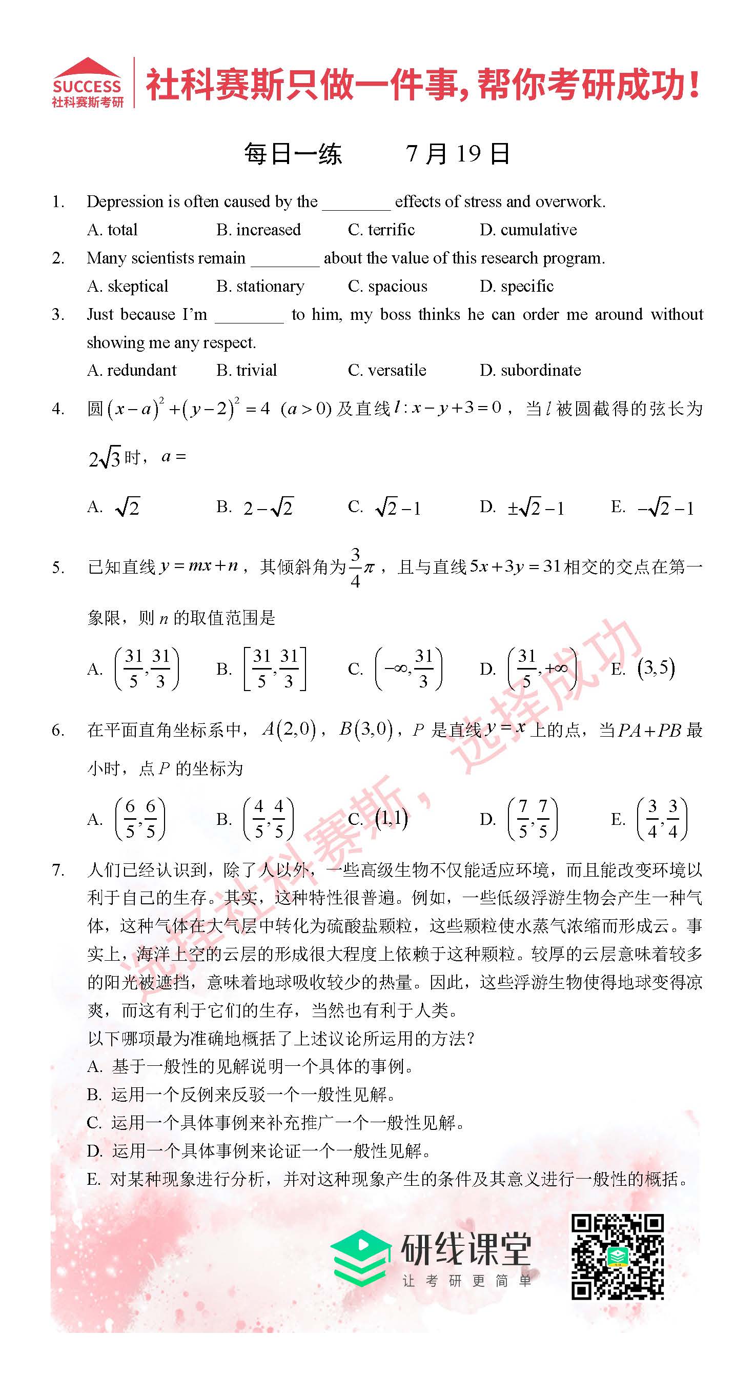 以上就是MBA備考網小編為大家提供的今日的每日一練“2021管理類聯考7月19日每日一練及答案”的全部內容,希望各位考生堅持利用起來,更多每日一練內容請持續關注MBA備考網管理類聯考每日一練