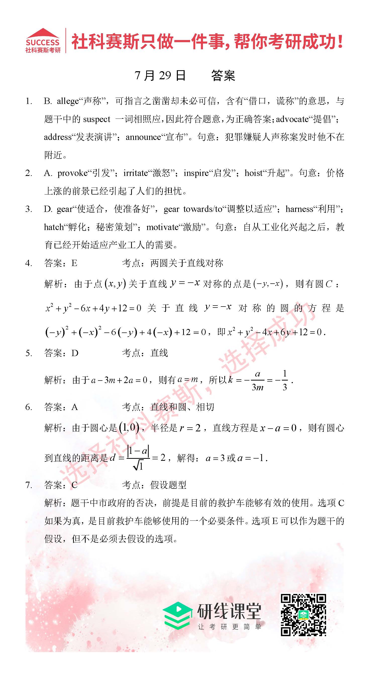 以上就是MBA備考網小編為大家提供的今日每日一練“2021管理類聯考7月29日每日一練及答案”的全部內容,希望各位考生堅持利用起來,更多每日一練內容請持續關注MBA備考網管理類聯考每日一練