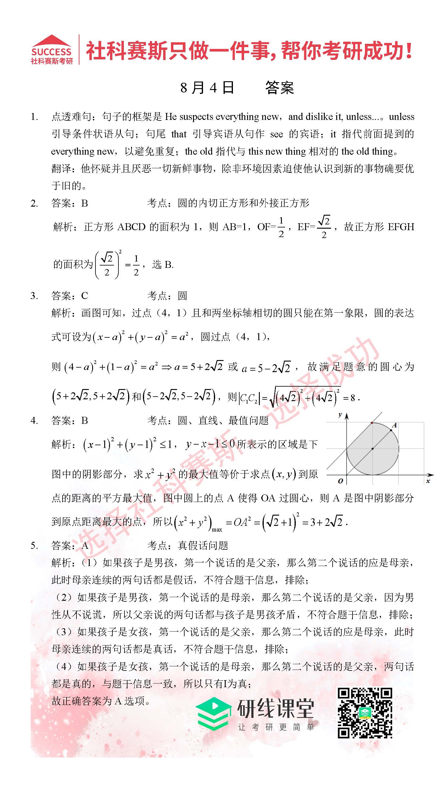 以上就是MBA備考網小編為大家提供的今日每日一練“2021管理類聯考8月4日每日一練及答案”的全部內容,希望各位考生堅持利用起來,更多每日一練內容請持續關注MBA備考網管理類聯考每日一練