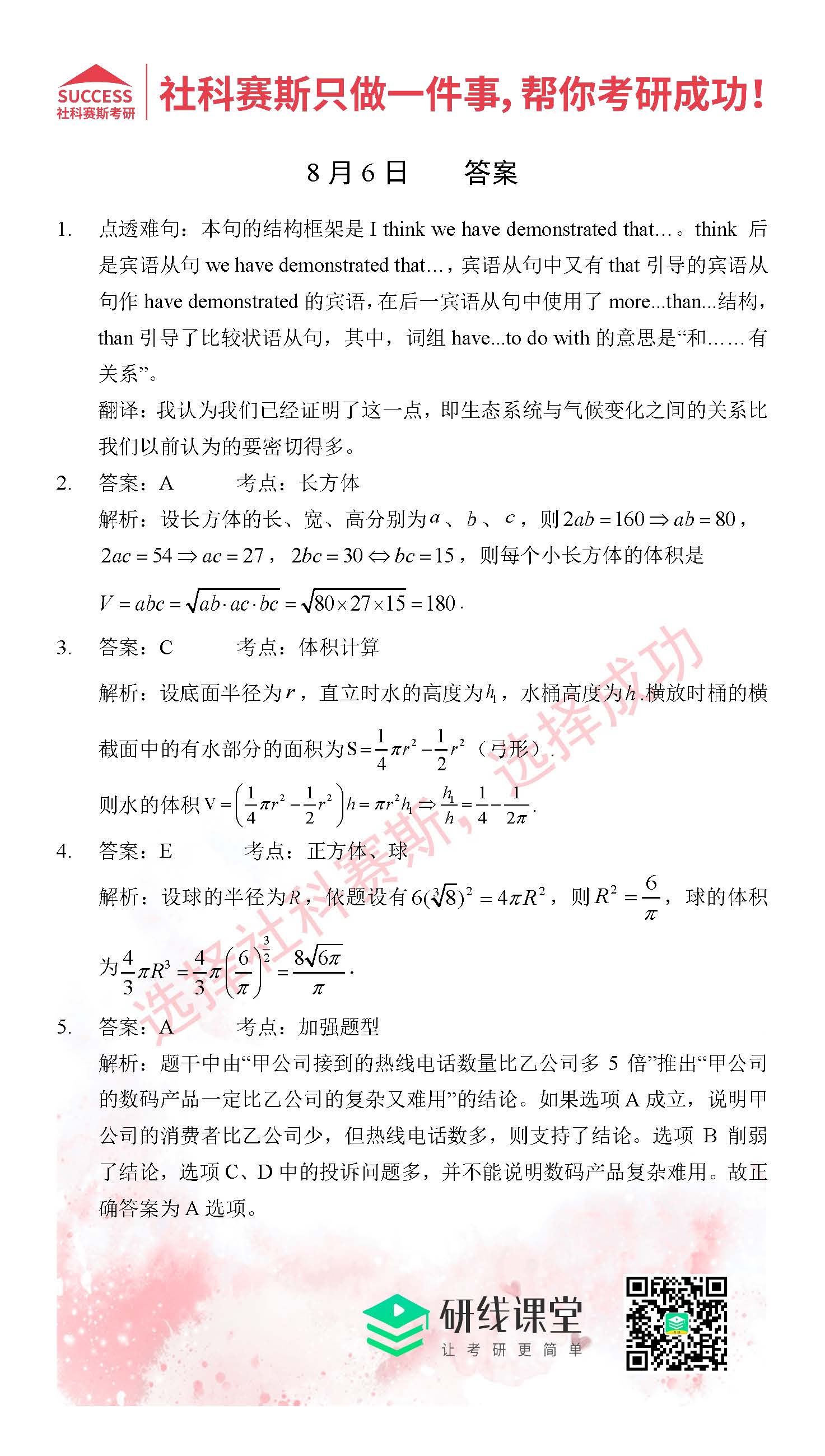 以上就是MBA備考網小編為大家提供的今日每日一練“2021管理類聯考8月6日每日一練及答案”的全部內容,希望各位考生堅持利用起來,更多每日一練內容請持續關注MBA備考網管理類聯考每日一練