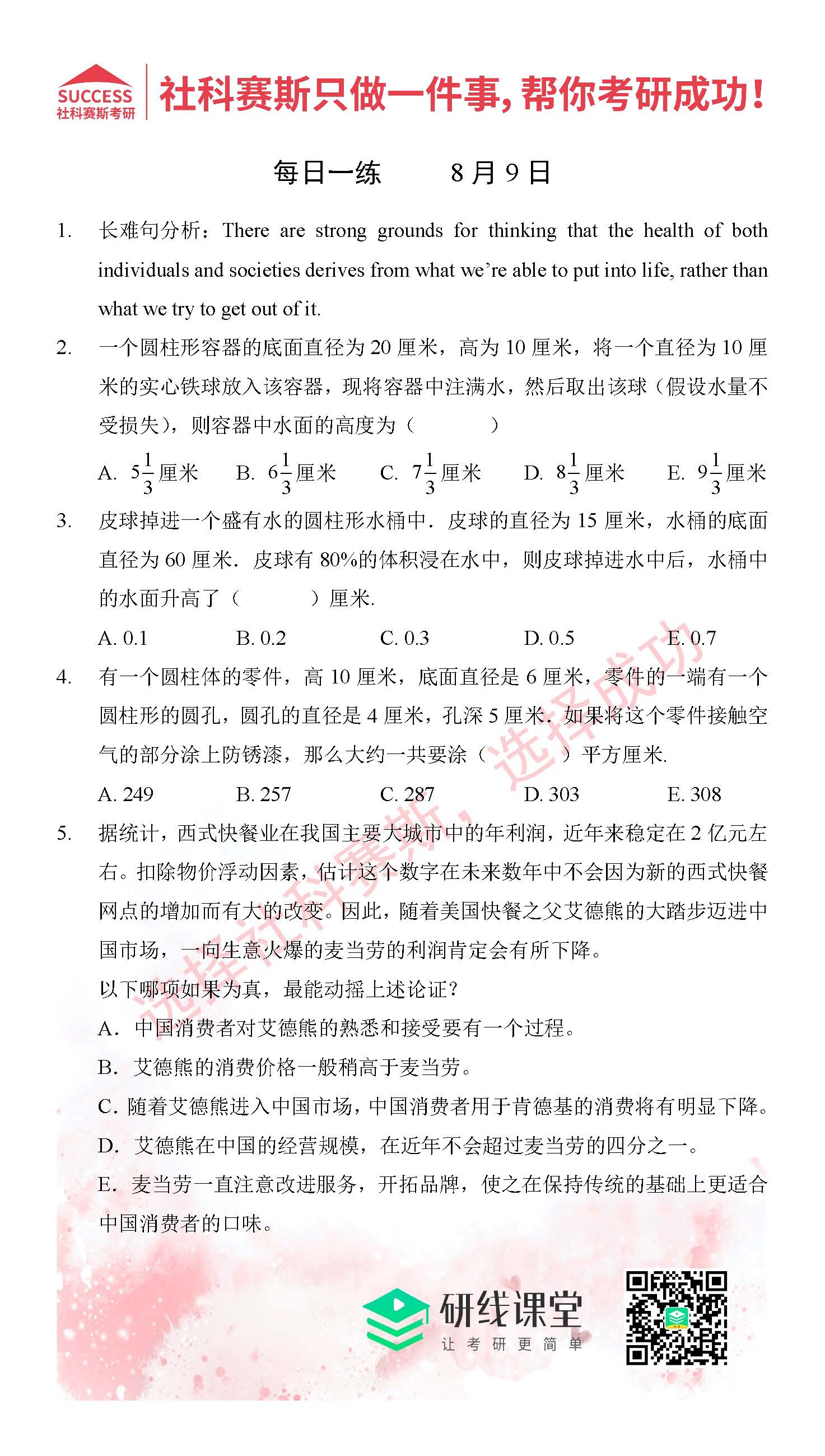 考研是一場持久戰(zhàn),保持良好的學習習慣,是能確保復習高效的關鍵。MBA備考網小編整理了管綜的每日一練,希望能對廣大考生有所幫助。