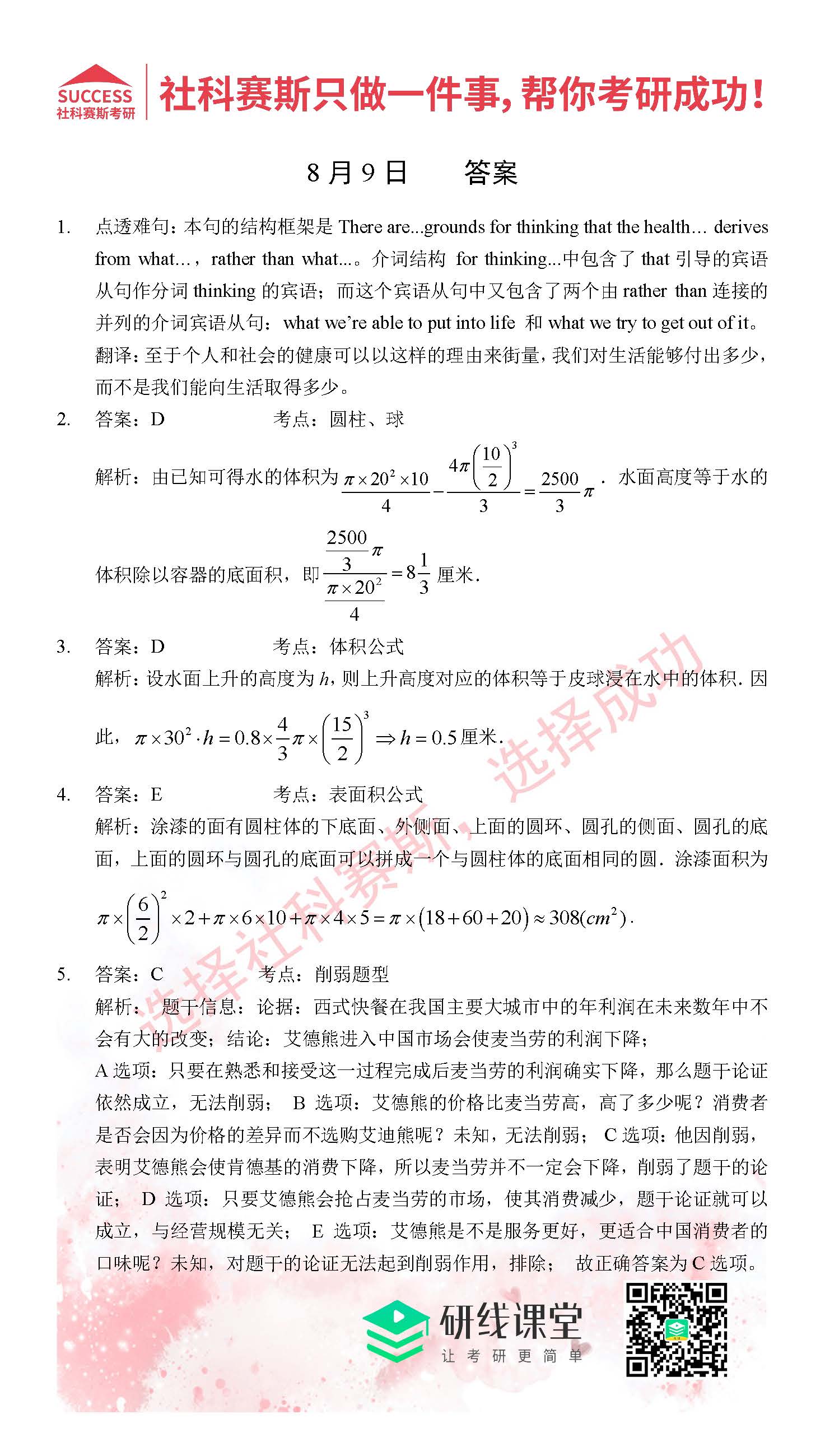 以上就是MBA備考網小編為大家提供的今日每日一練“2021管理類聯考8月9日每日一練及答案”的全部內容,希望各位考生堅持利用起來,更多每日一練內容請持續(xù)關注MBA備考網管理類聯考每日一練。