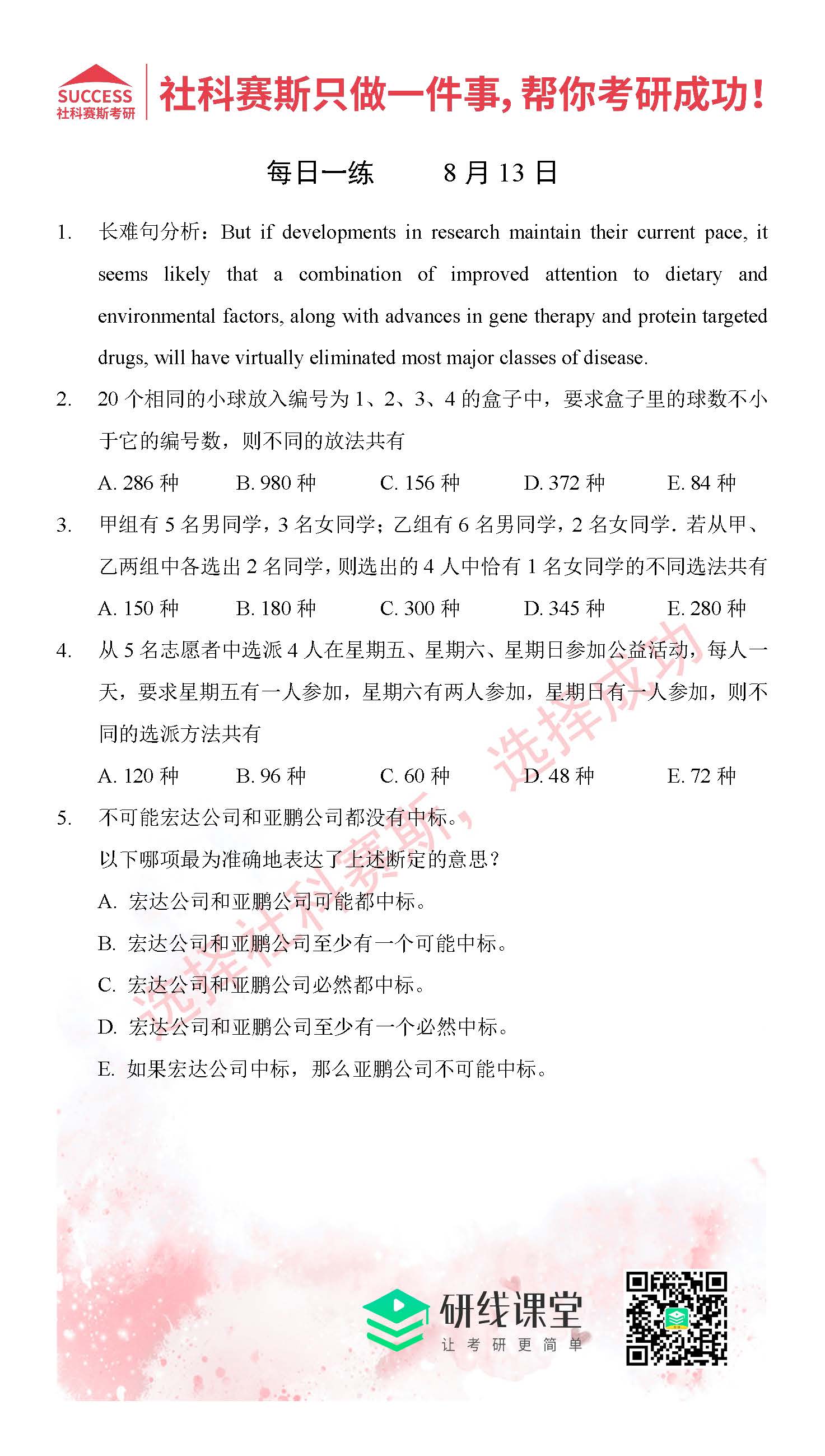 考研是一場持久戰(zhàn),保持良好的學習習慣,是能確保復習高效的關鍵。MBA備考網(wǎng)小編整理了管綜的每日一練,希望能對廣大考生有所幫助。