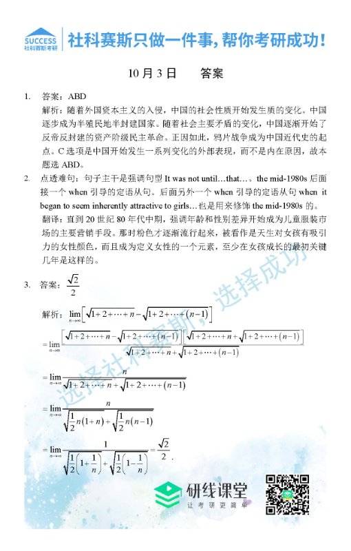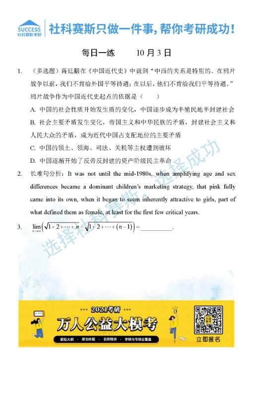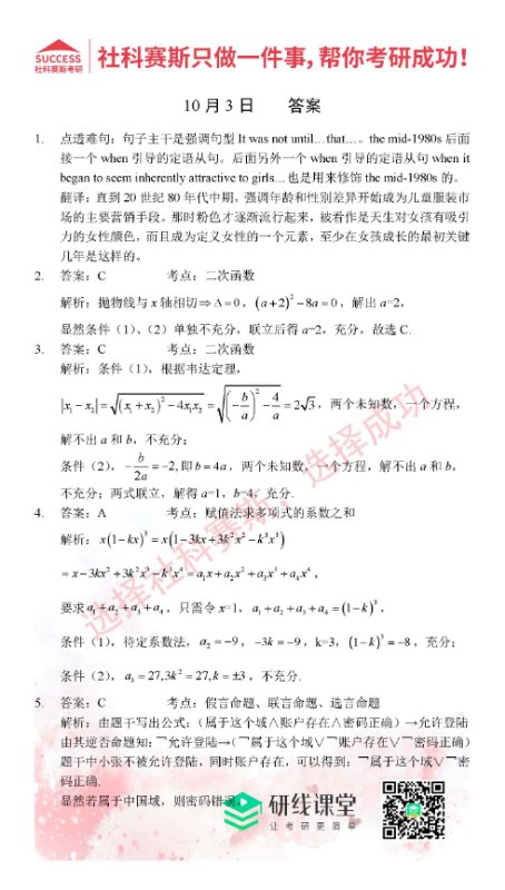 考研是一場(chǎng)持久戰(zhàn),保持良好的學(xué)習(xí)習(xí)慣,是能確保復(fù)習(xí)高效的關(guān)鍵。今天社科賽斯MBA備考網(wǎng)小編整理了“2021管理類聯(lián)考10月3日每日一練及答案”的內(nèi)容,希望能對(duì)廣大考生有所幫助。