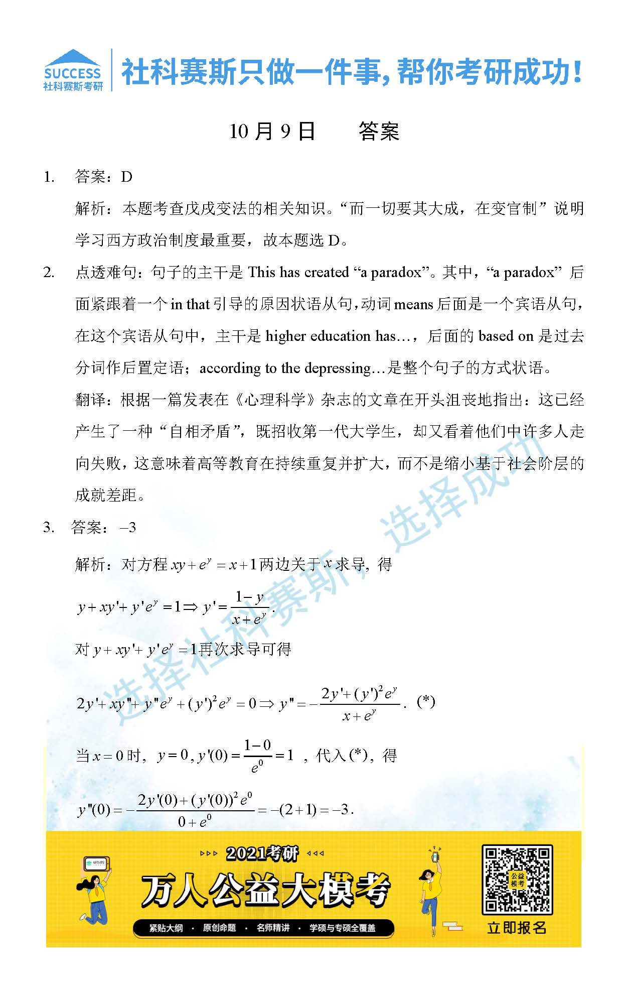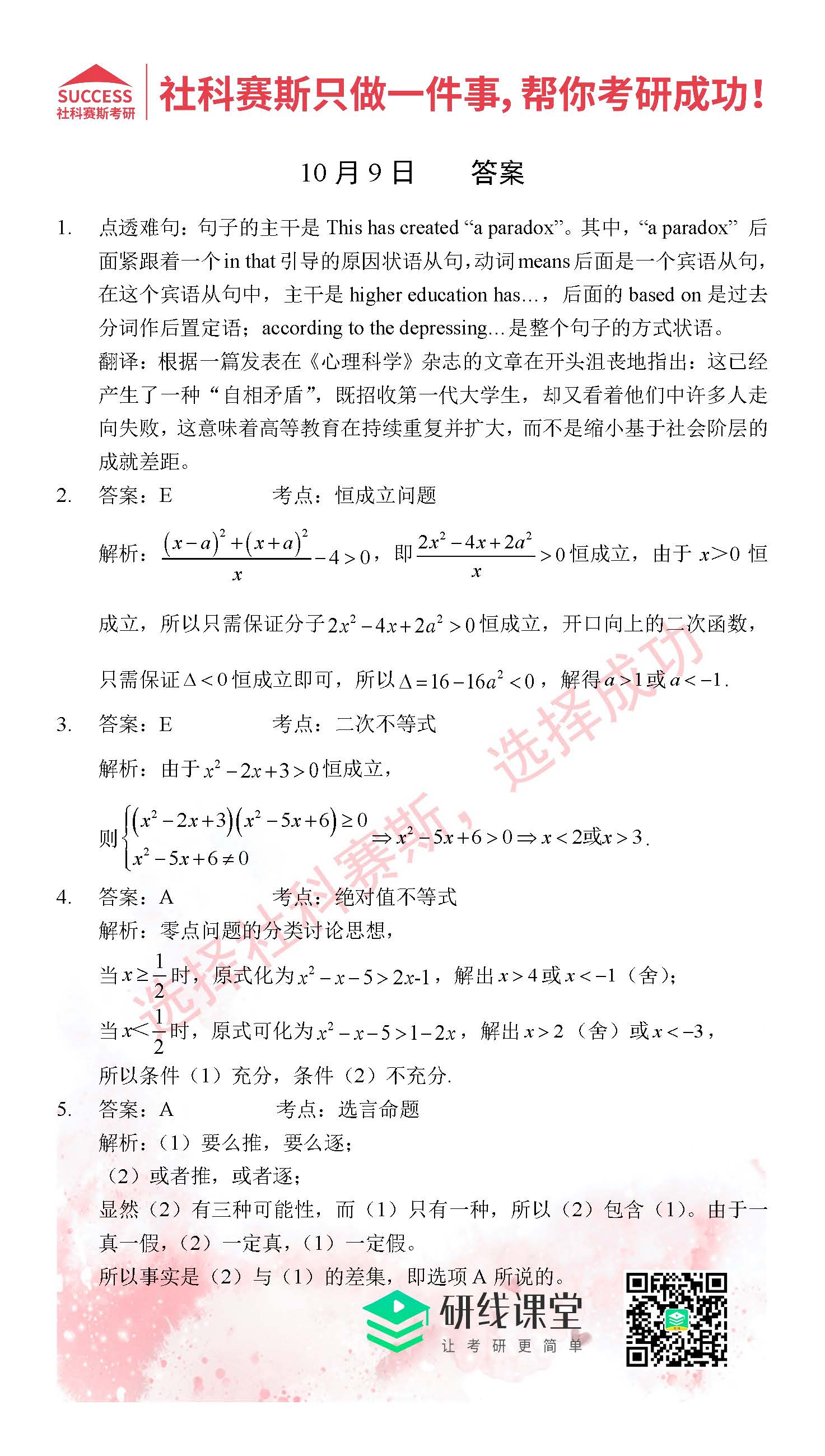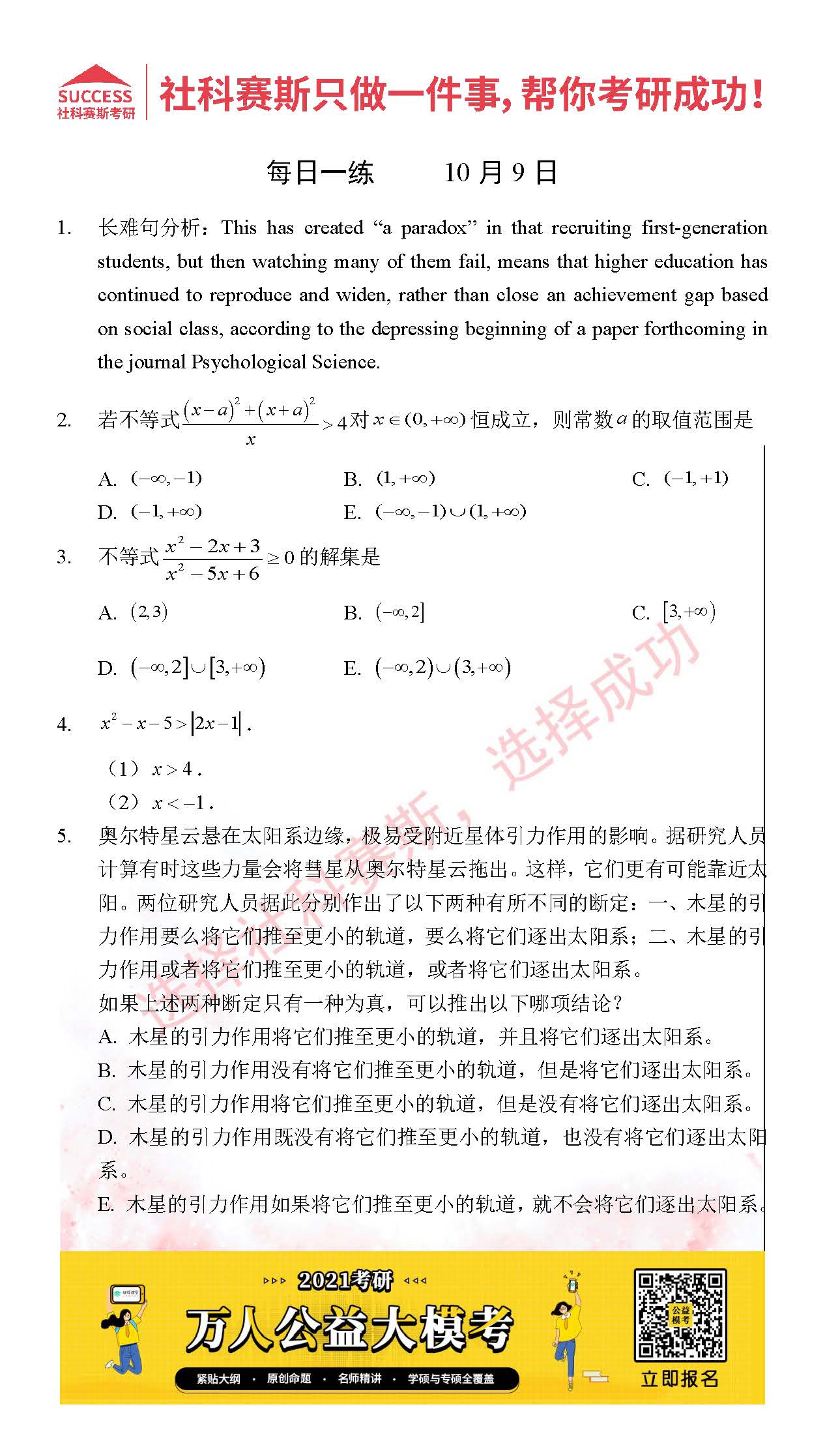 考研是一場持久戰(zhàn),保持良好的學(xué)習(xí)習(xí)慣,是能確保復(fù)習(xí)高效的關(guān)鍵。今天社科賽斯MBA備考網(wǎng)小編整理了“2021管理類聯(lián)考10月9日每日一練及答案”的內(nèi)容,希望能對(duì)廣大考生有所幫助。