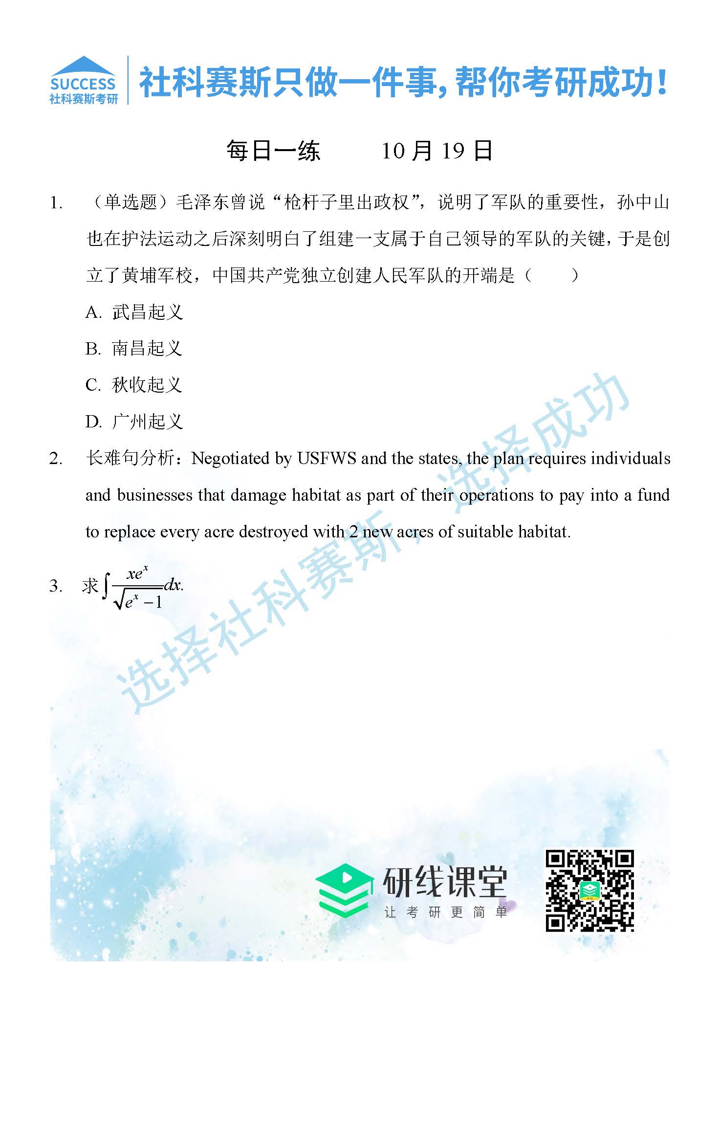 導(dǎo)讀:考研是一場(chǎng)持久戰(zhàn),保持良好的學(xué)習(xí)習(xí)慣,是能確保復(fù)習(xí)高效的關(guān)鍵。今天社科賽斯MBA備考網(wǎng)小編整理了“2021管理類聯(lián)10月19日每日一練及答案”的內(nèi)容,希望能對(duì)廣大考生有所幫助。