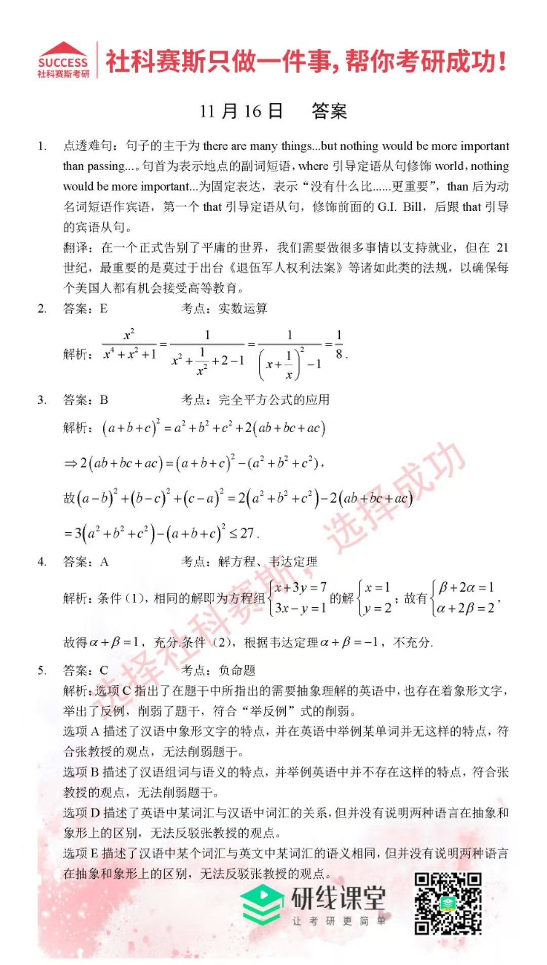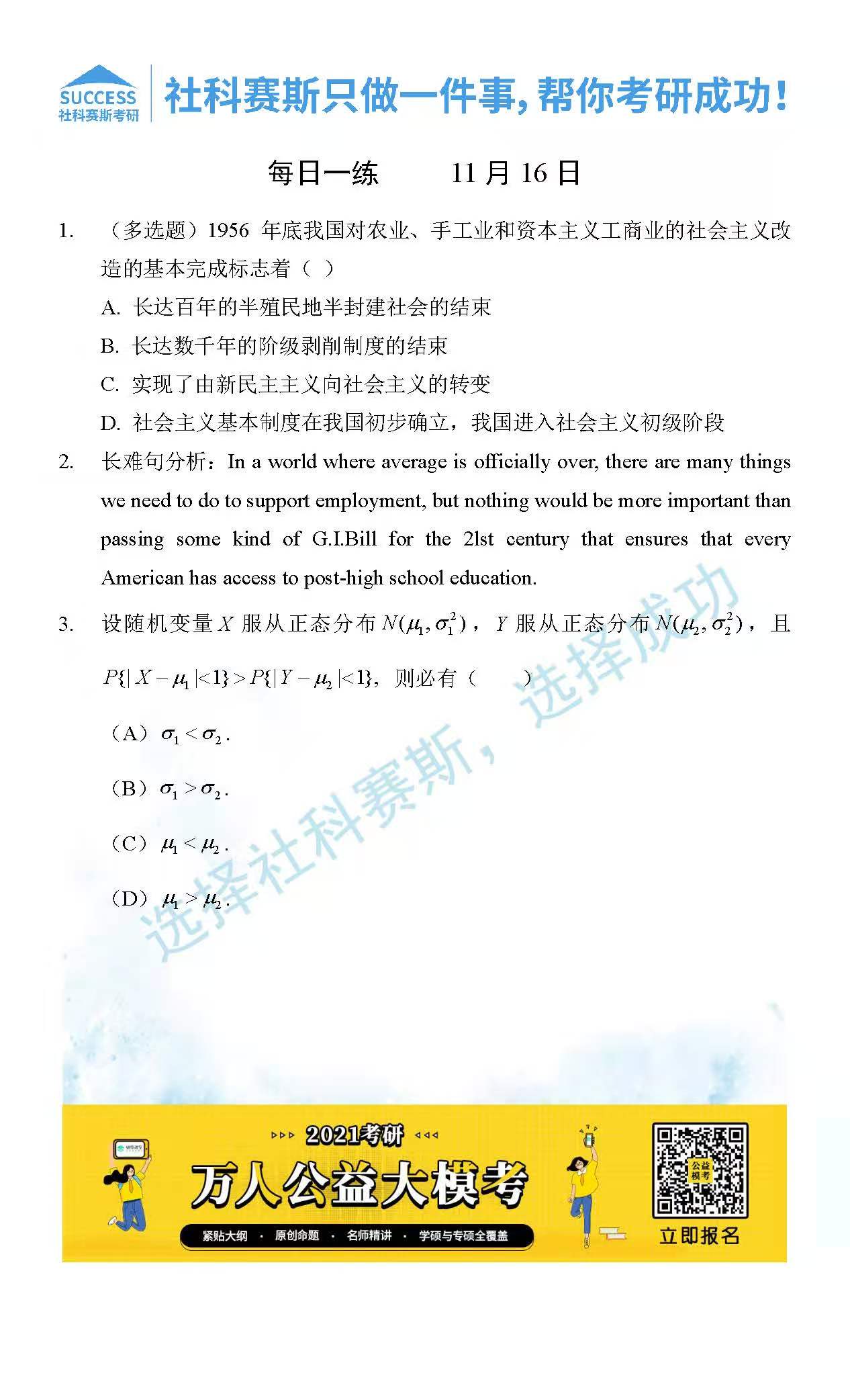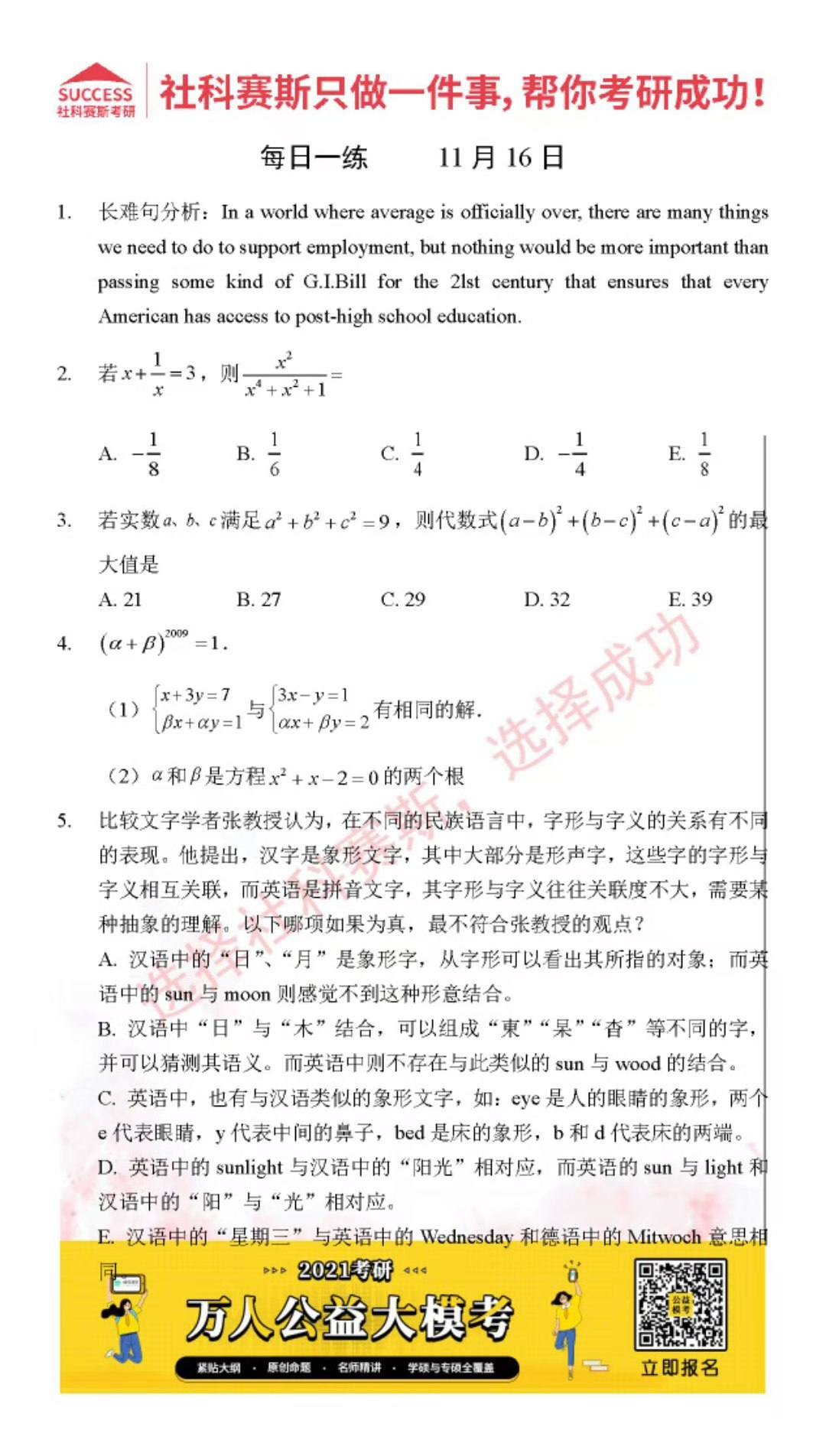 考研是一場持久戰(zhàn),保持良好的學(xué)習(xí)習(xí)慣,是能確保復(fù)習(xí)高效的關(guān)鍵。今天社科賽斯MBA備考網(wǎng)小編整理了“2021管理類聯(lián)11月16日每日一練及答案”的內(nèi)容,希望能對廣大考生有所幫助。