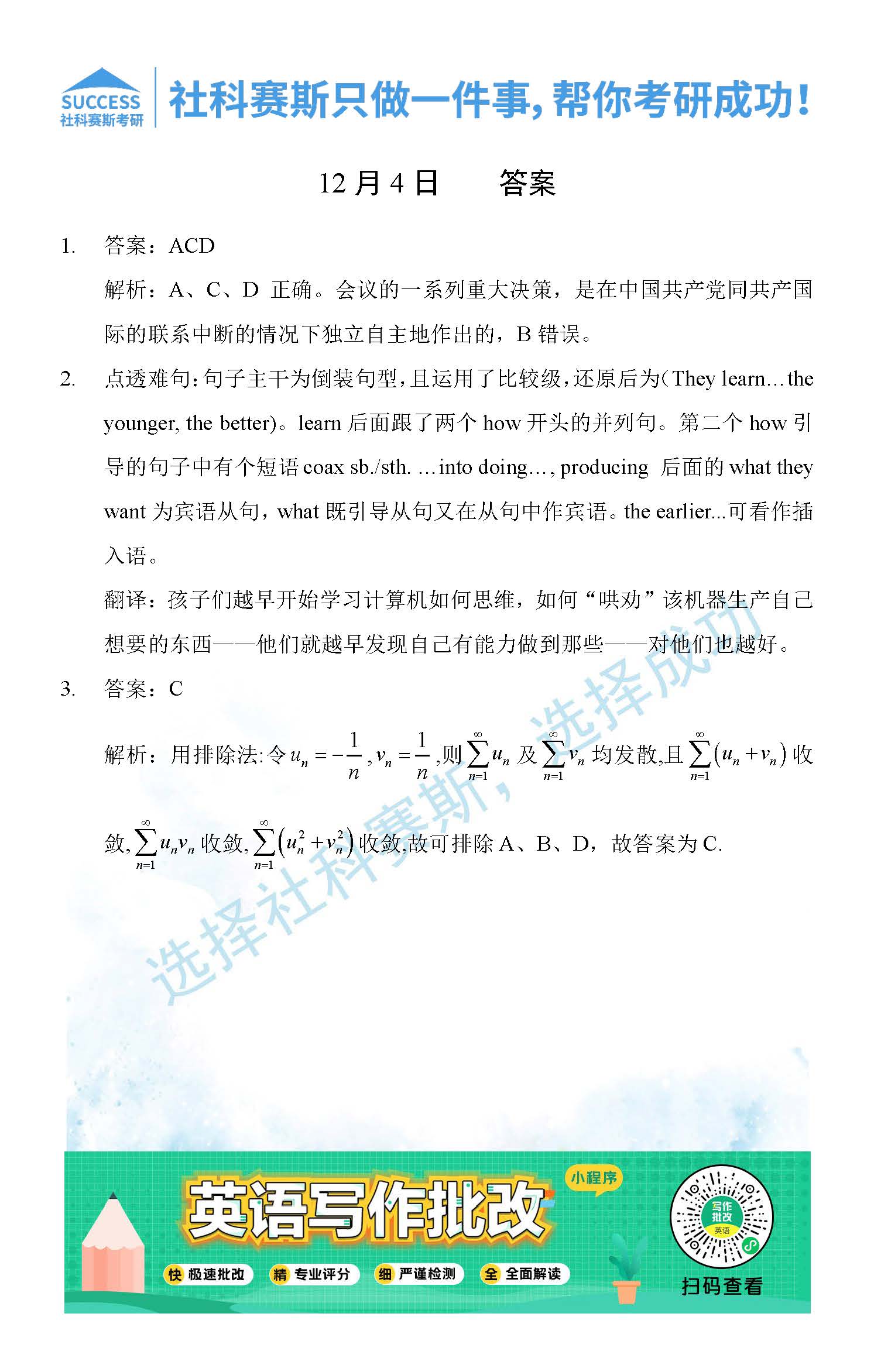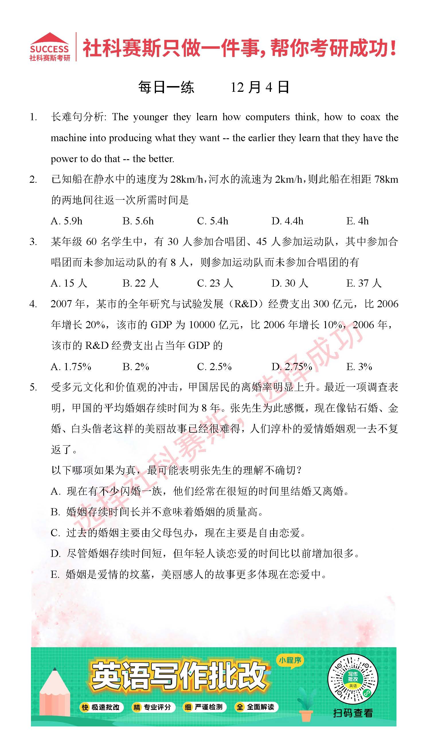2021管理類聯(lián)考12月4日每日一練及答案”