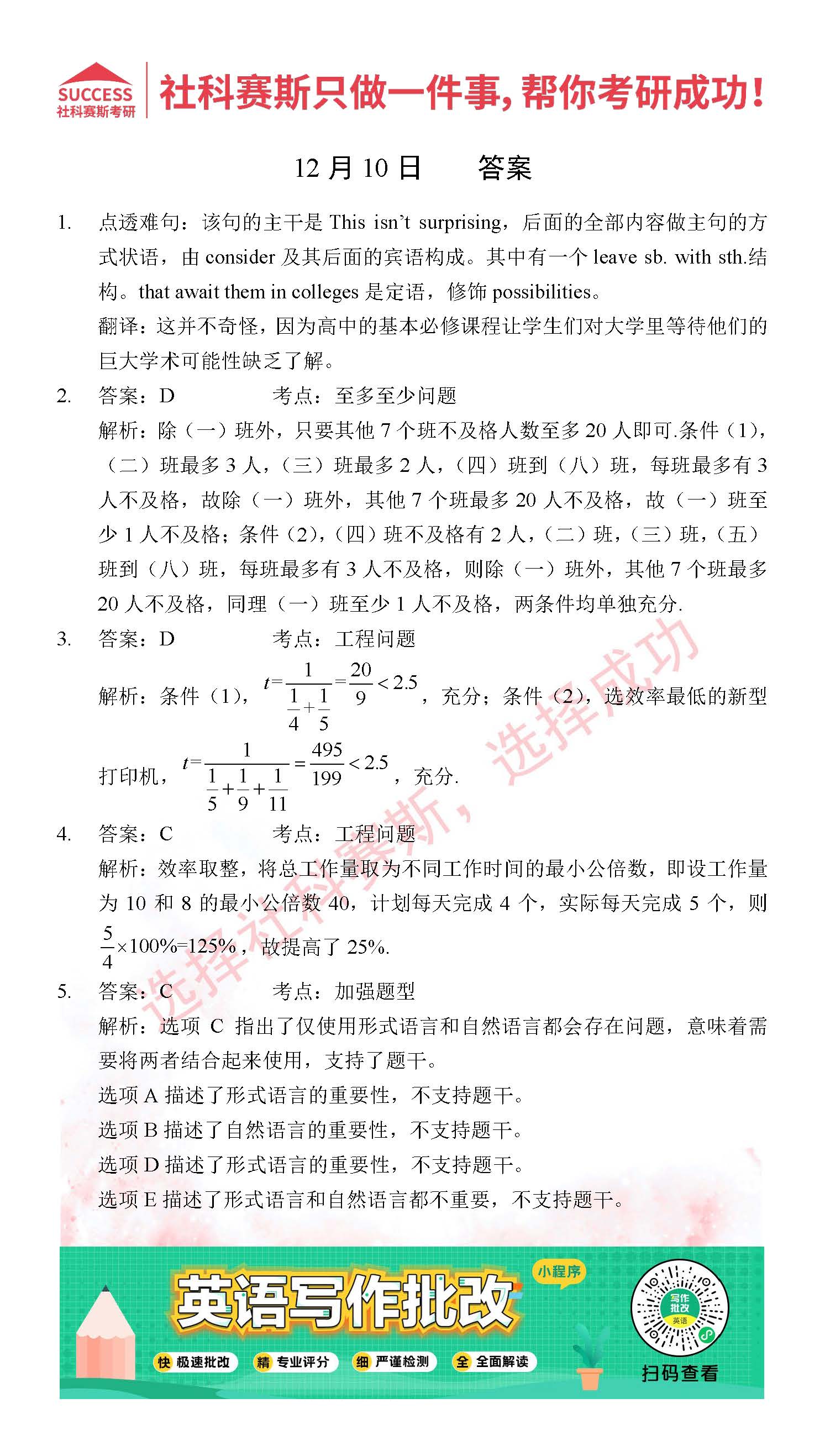 導讀:考研是一場持久戰,保持良好的學習習慣,是能確保復習高效的關鍵。今天社科賽斯MBA備考網小編整理了“2021管理類聯12月10日每日一練及答案”的內容,希望能對廣大考生有所幫助。