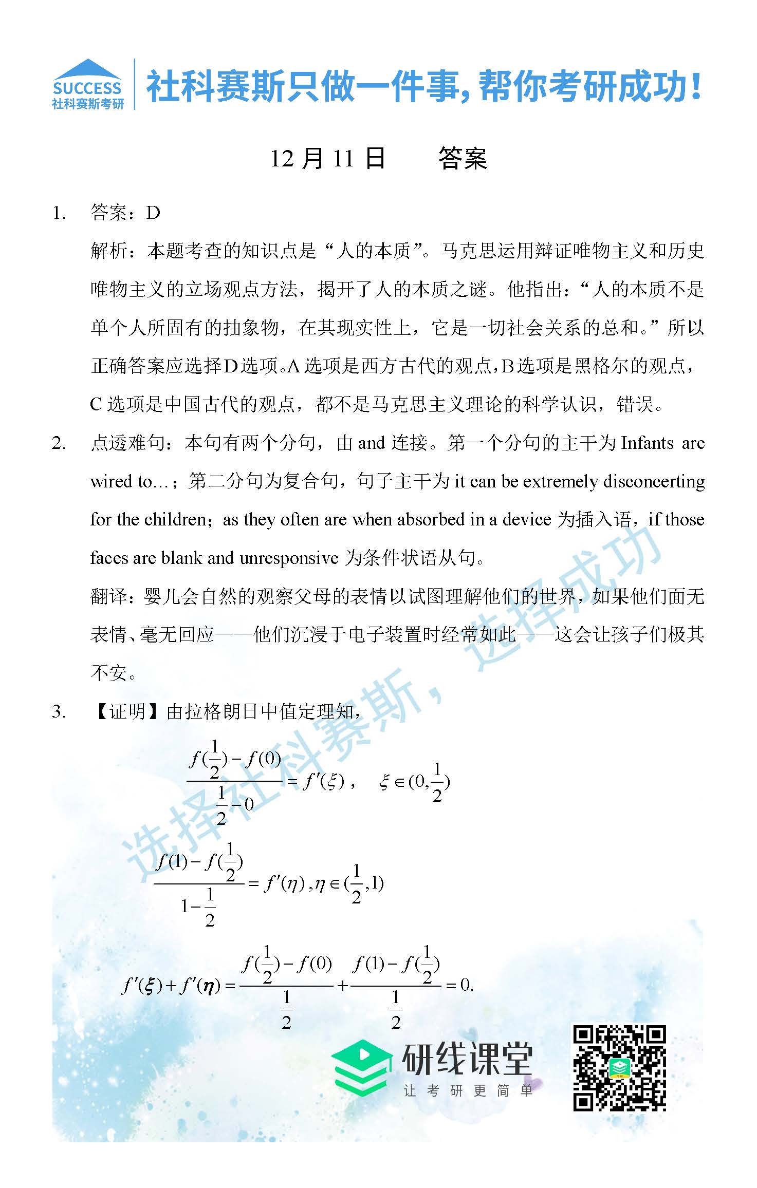 導讀:考研是一場持久戰,保持良好的學習習慣,是能確保復習高效的關鍵。今天社科賽斯MBA備考網小編整理了“2021管理類聯12月11日每日一練及答案”的內容,希望能對廣大考生有所幫助。