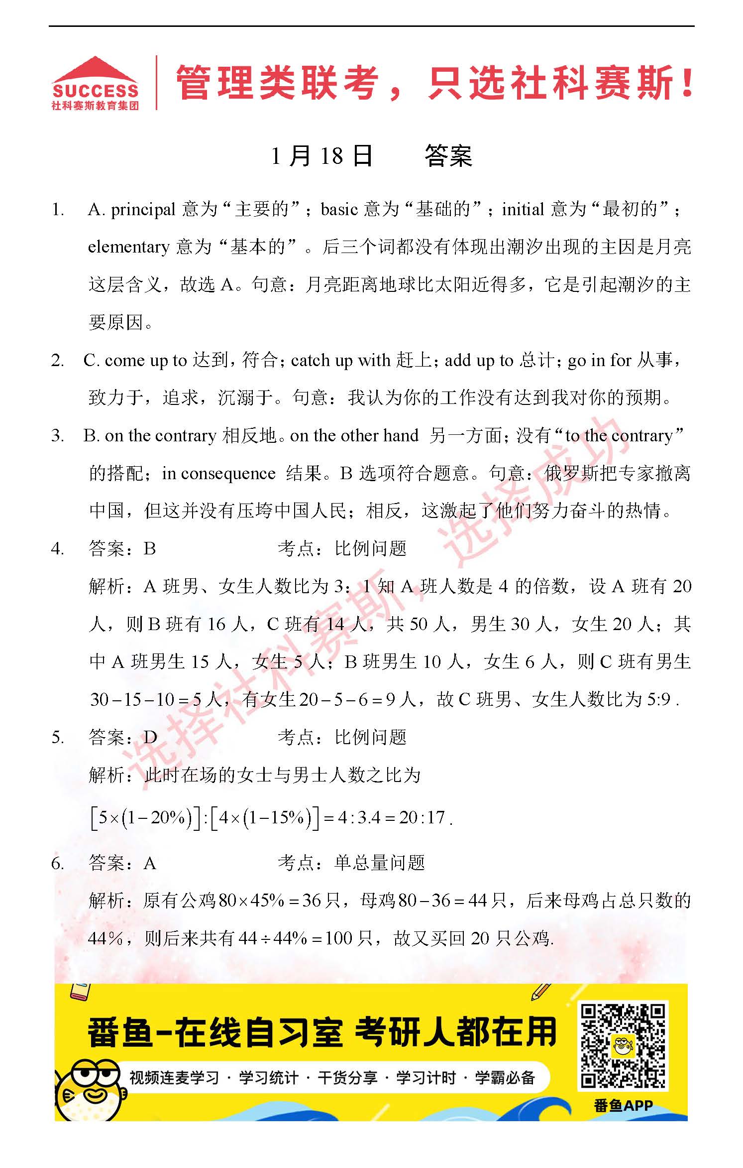 導(dǎo)讀:考研是一場(chǎng)持久戰(zhàn),保持良好的學(xué)習(xí)習(xí)慣,是能確保復(fù)習(xí)高效的關(guān)鍵。今天社科賽斯MBA備考網(wǎng)小編整理了“2022管理類聯(lián)1月18日每日一練及答案”的內(nèi)容,希望能對(duì)廣大考生有所幫助。