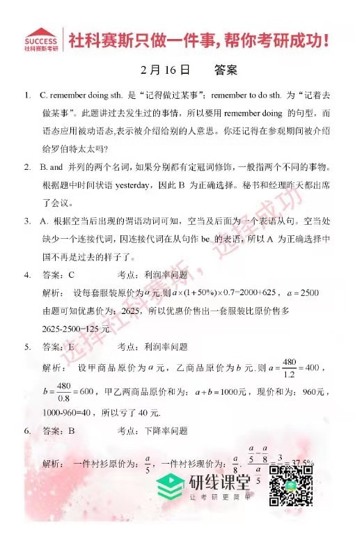 導讀:考研是一場持久戰(zhàn),保持良好的學習習慣,是能確保復習高效的關鍵。今天社科賽斯MBA備考網(wǎng)小編整理了“2022管理類聯(lián)2月16日每日一練及答案”的內(nèi)容,希望能對廣大考生有所幫助。