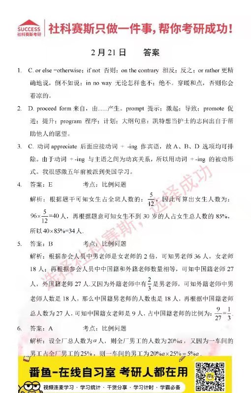 以上就是社科賽斯MBA備考網(wǎng)小編為大家整理“2022管理類聯(lián)考2月21日每日一練及答案”的全部?jī)?nèi)容,希望各位考生堅(jiān)持利用起來,更多每日一練內(nèi)容請(qǐng)持續(xù)關(guān)注MBA備考網(wǎng)管理類聯(lián)考每日一練。