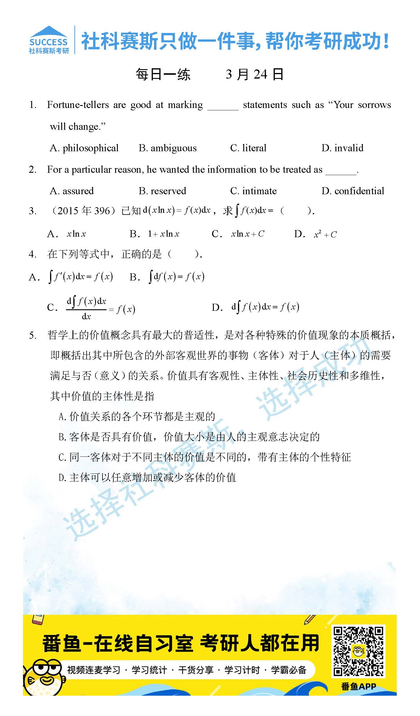 導讀:考研是一場持久戰(zhàn),保持良好的學習習慣,是能確保復習高效的關鍵。今天社科賽斯MBA備考網(wǎng)小編整理了“2022管理類聯(lián)3月24日每日一練及答案”的內(nèi)容,希望能對廣大考生有所幫助。